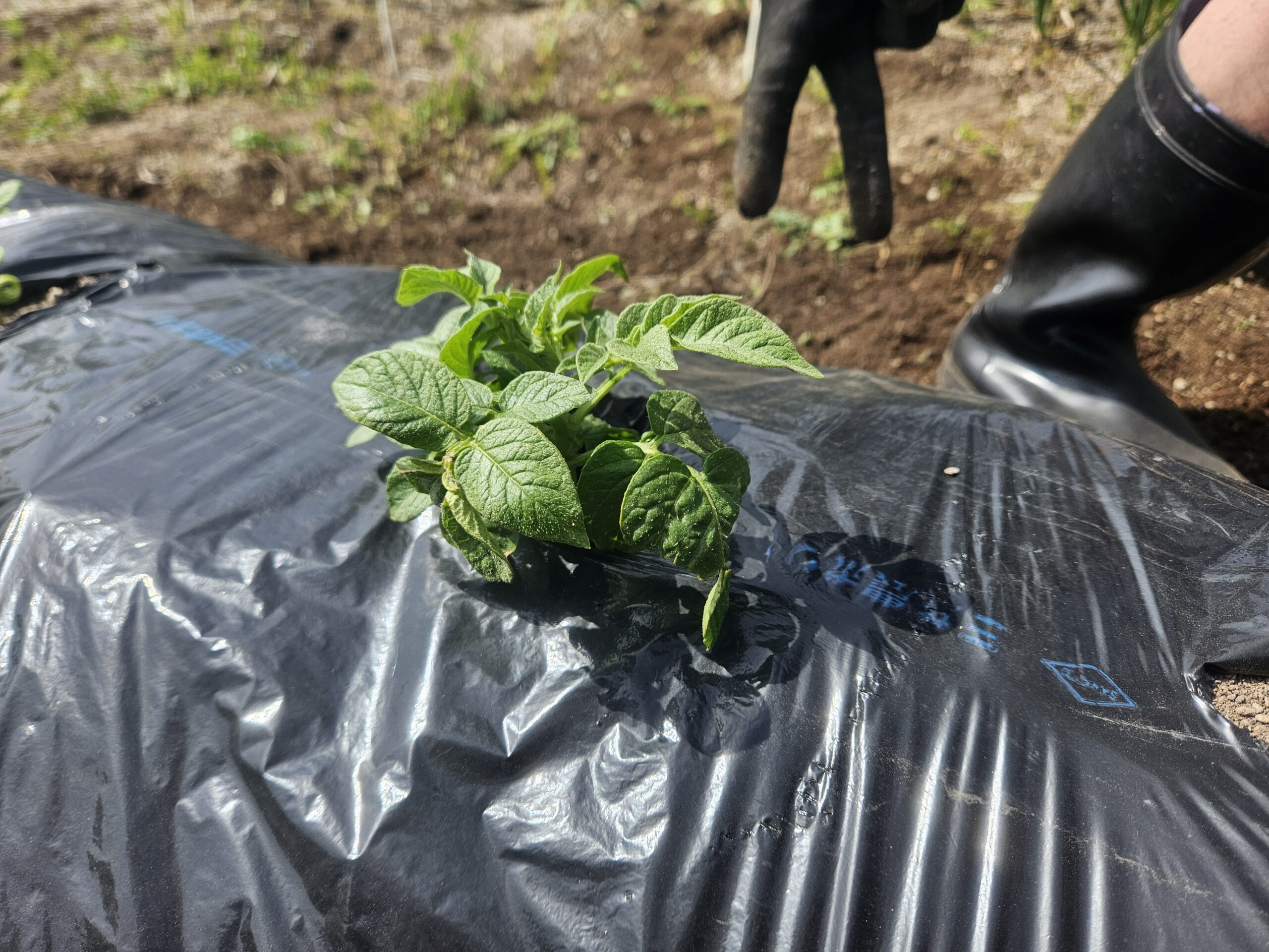 また、3月に植えたジャガイモも葉が大きくなり、 マルチの下にはきっと大きなジャガイモが育っていることと願います。