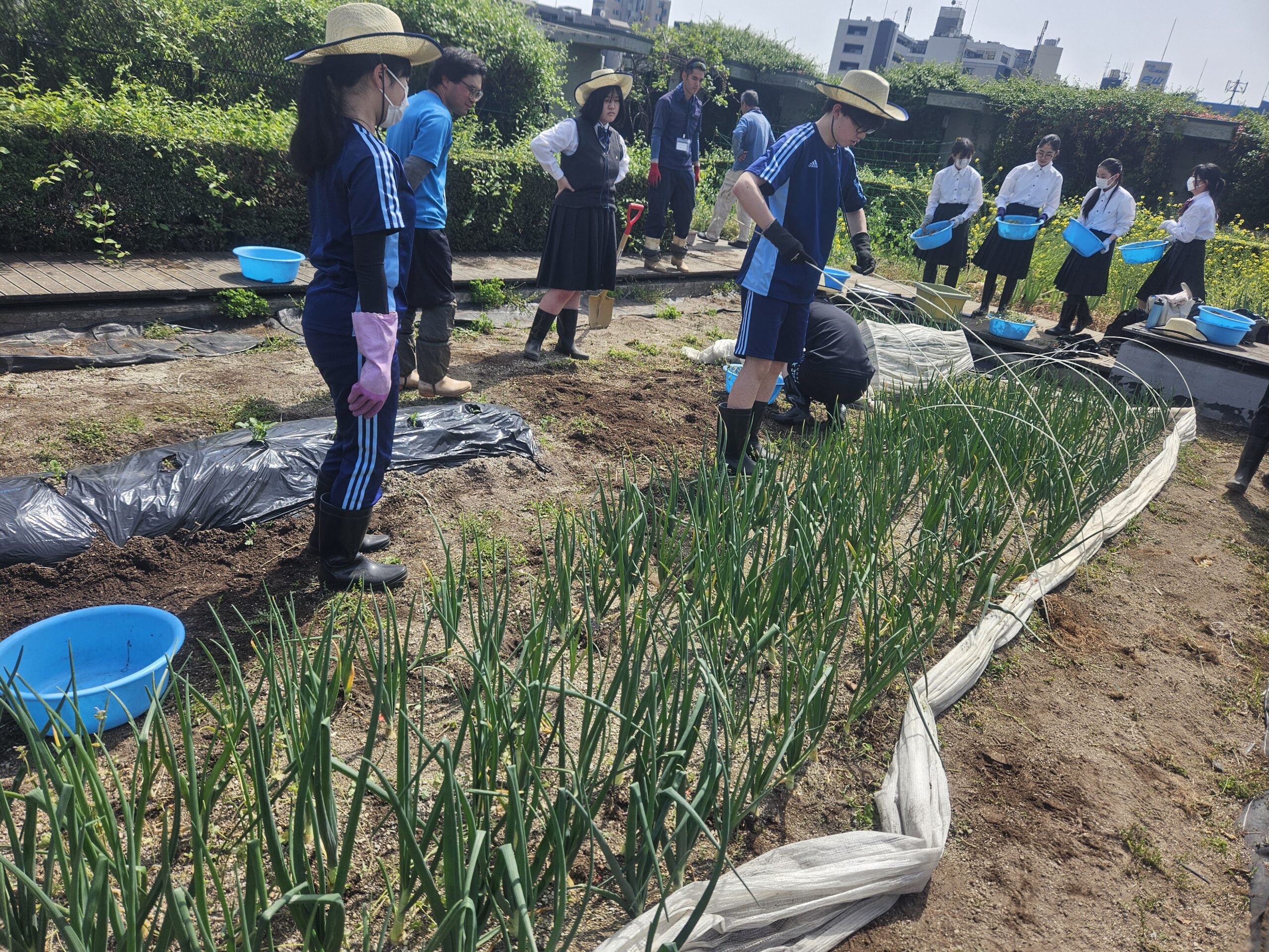 新入生と一緒にたまねぎの雑草とりを行いました。
