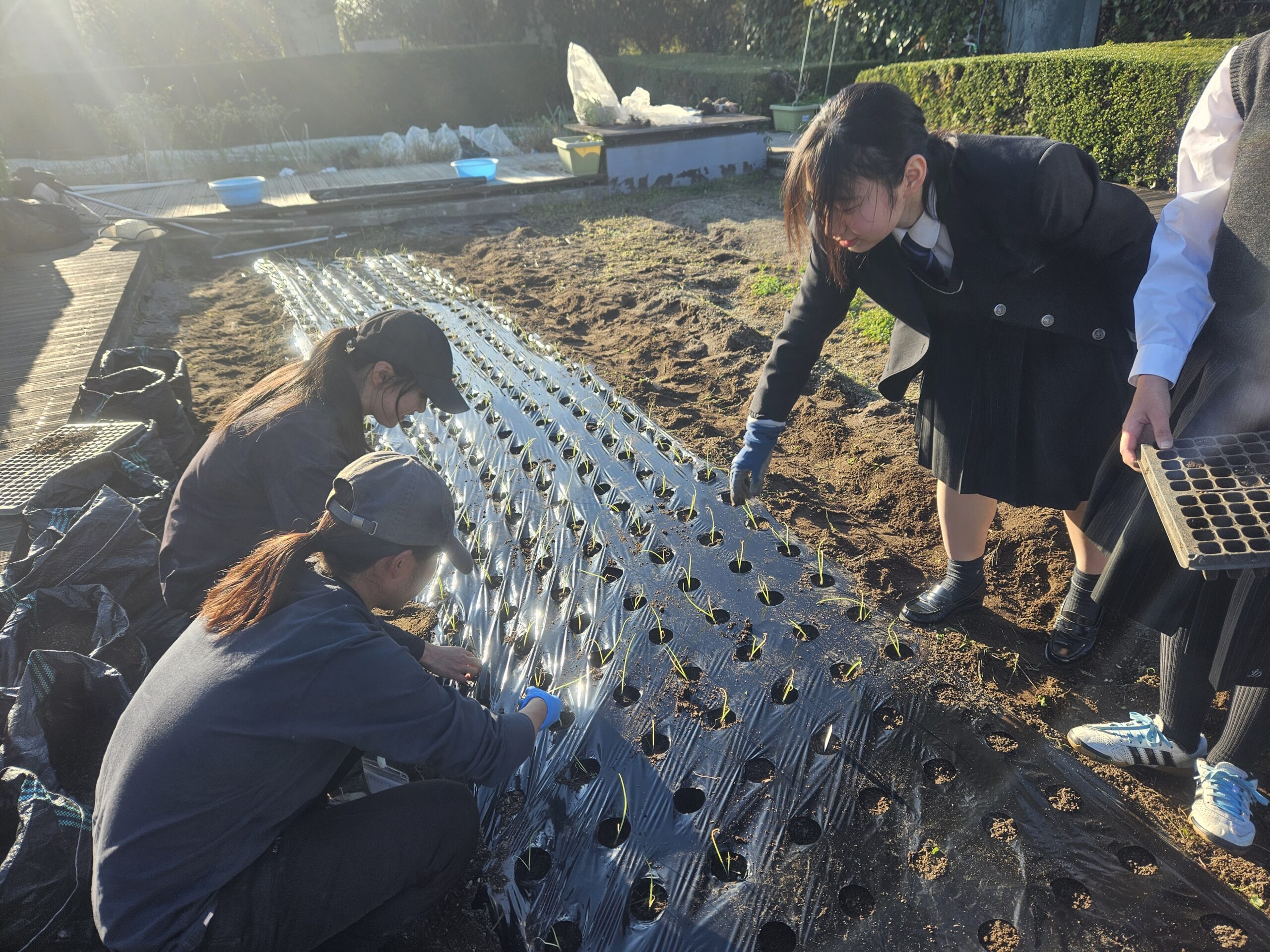 11月の下旬、農業研究会の活動にて、タマネギを苗付けしました。