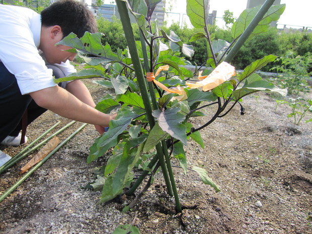 今日は、東京農業大学から多数の学生たちが、屋上農園の見学にいらっしゃってくださいました。