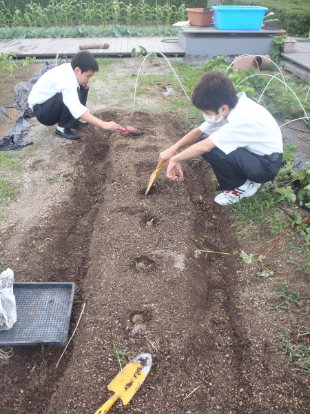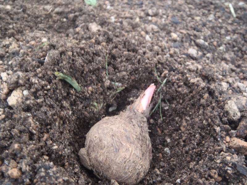 12~3個植えました。 サトイモは乾燥に弱いので、しっかり水をまかなければいけません。