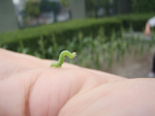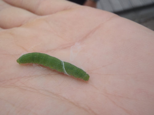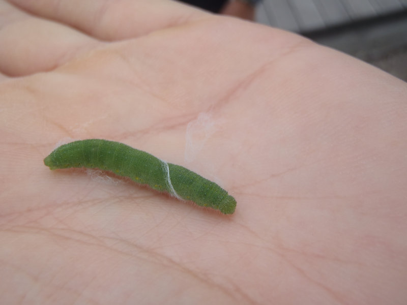 モンシロチョウの幼虫。彼らがキャベツを食べてしまいます。可哀想ですが駆除せざるをえません。