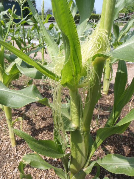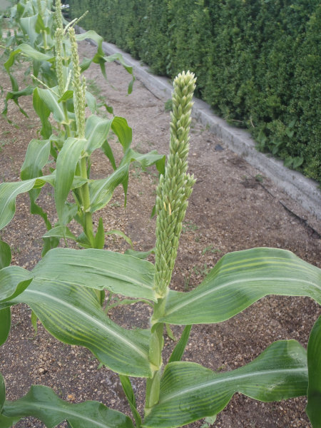トウモロコシの雄花(おばな)です。ここに黄色い実をつけるわけではありません。