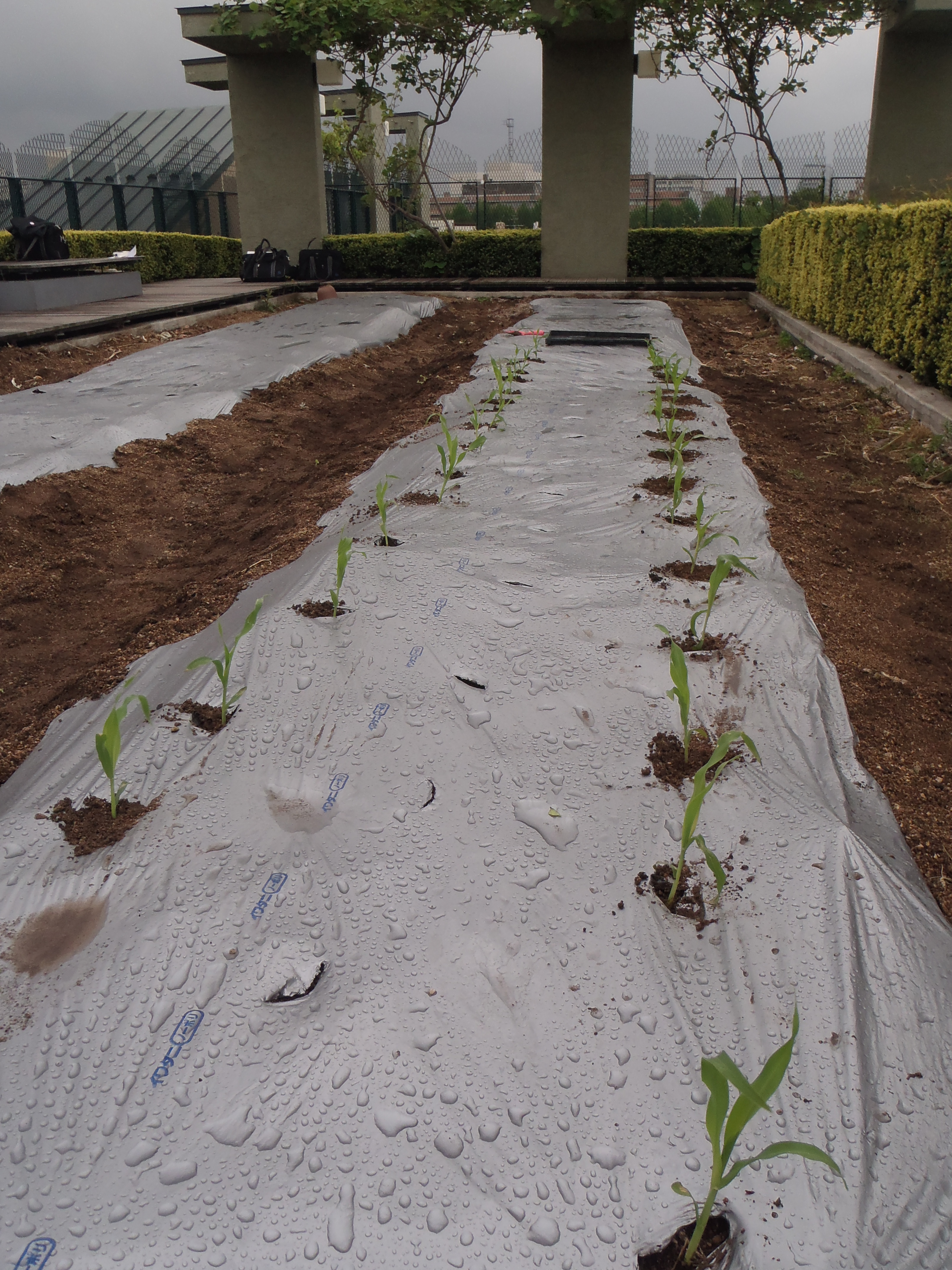 暖かくなり、トウモロコシが勢いよく成長しています。 下の写真は4月のトウモロコシ畑です。 現在はこちらです↓