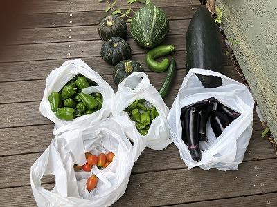 カボチャ、ナス、キュウリ、大きくなってしまったズッキーニ、