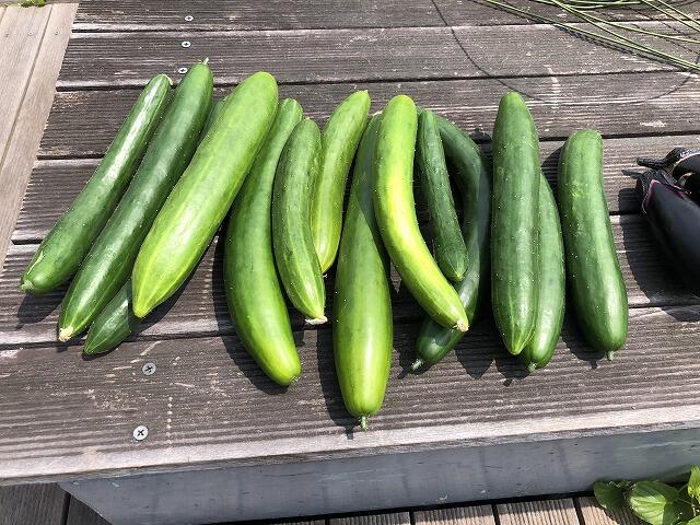 キュウリ、ナス、ピーマン、シシトウ収穫、ニンジン種まき