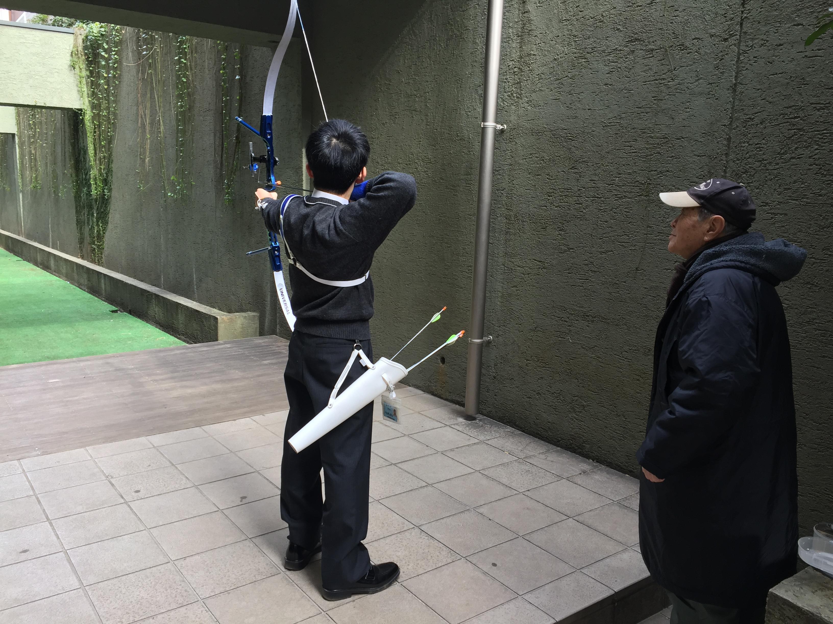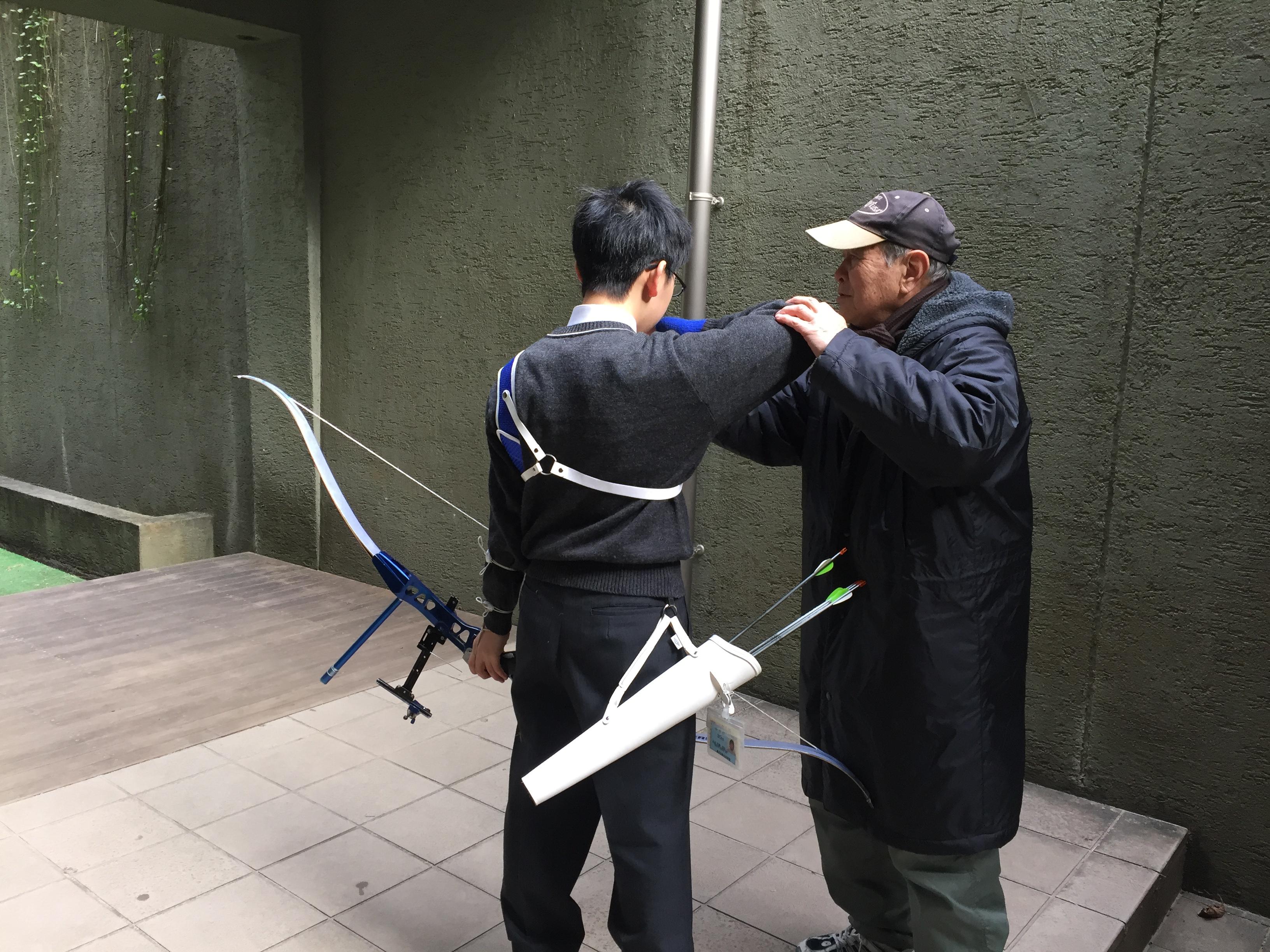 中学1年生の部員もコーチからご指導を受け、一射一射