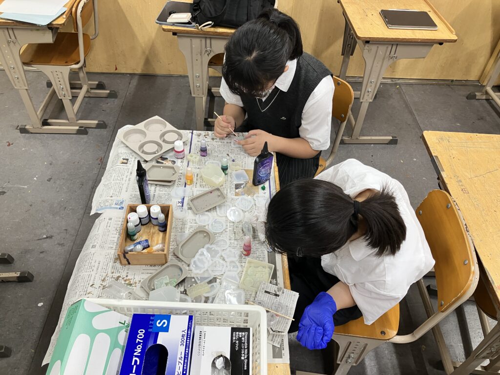 この二人は中学2年生ながらもはやレジンの扱いはプロ並み。高校生にも教えていました。