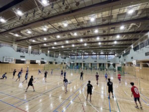 4月の仮入部期間が終わり、バドミントン部の新体制が始まりました。最初は基礎的なメニューが中心です。