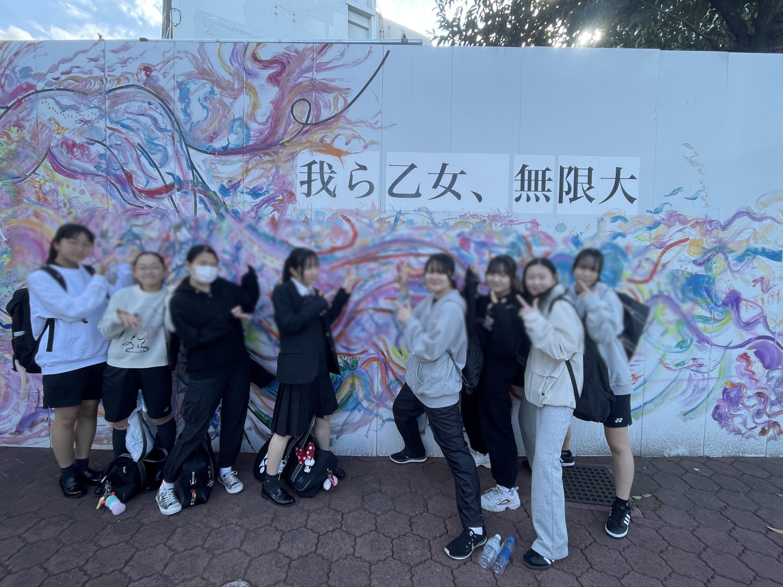 また、春休みには瀧野川女子学園での練習試合を行ないました。中高の女子部員のみで参加し、練習後に正門前で集合写真を撮りました。