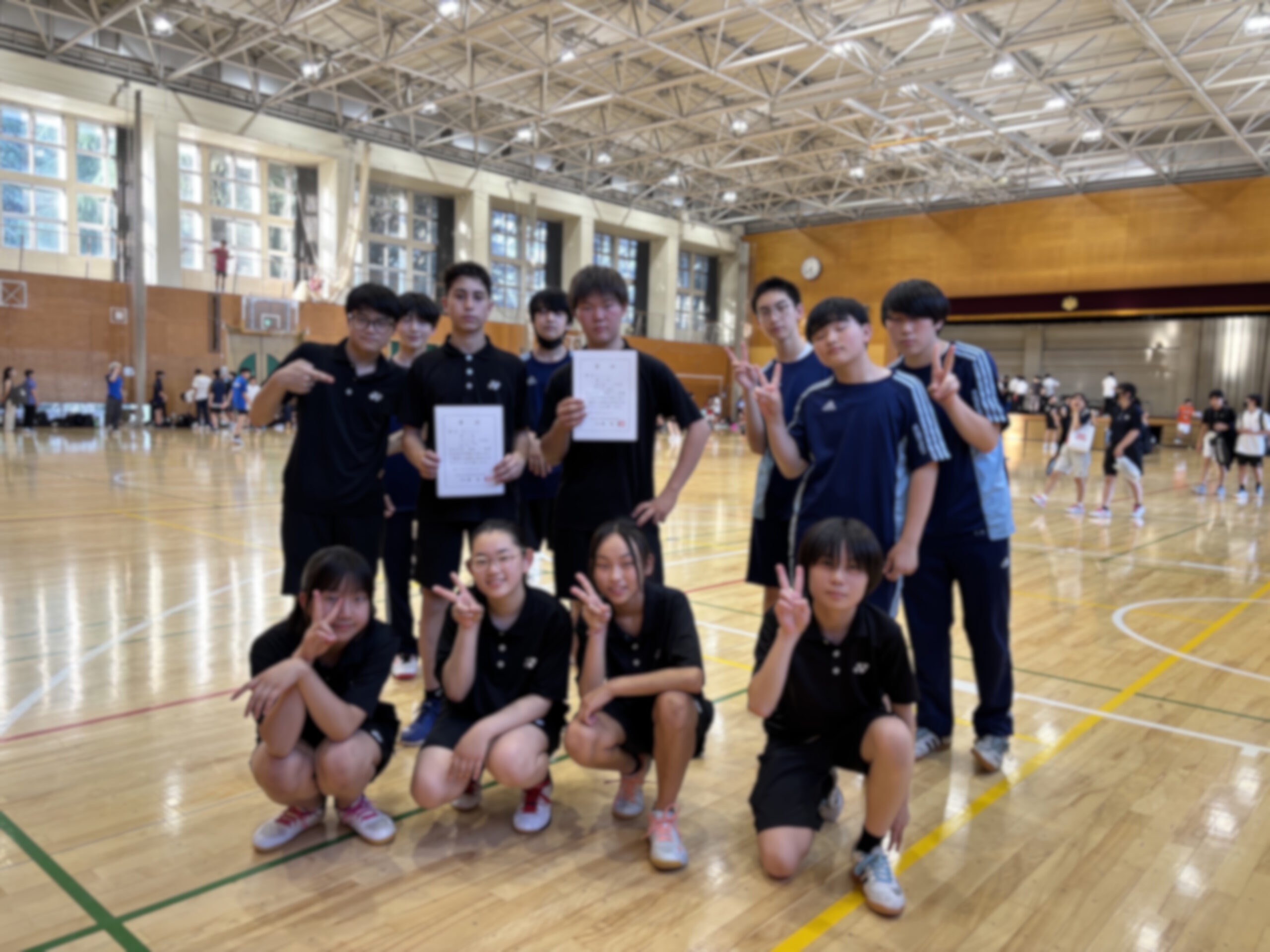 ⇧準優勝の賞状を手にした記念写真。後輩たちの熱い応援が力となりました。⇧続きの7月