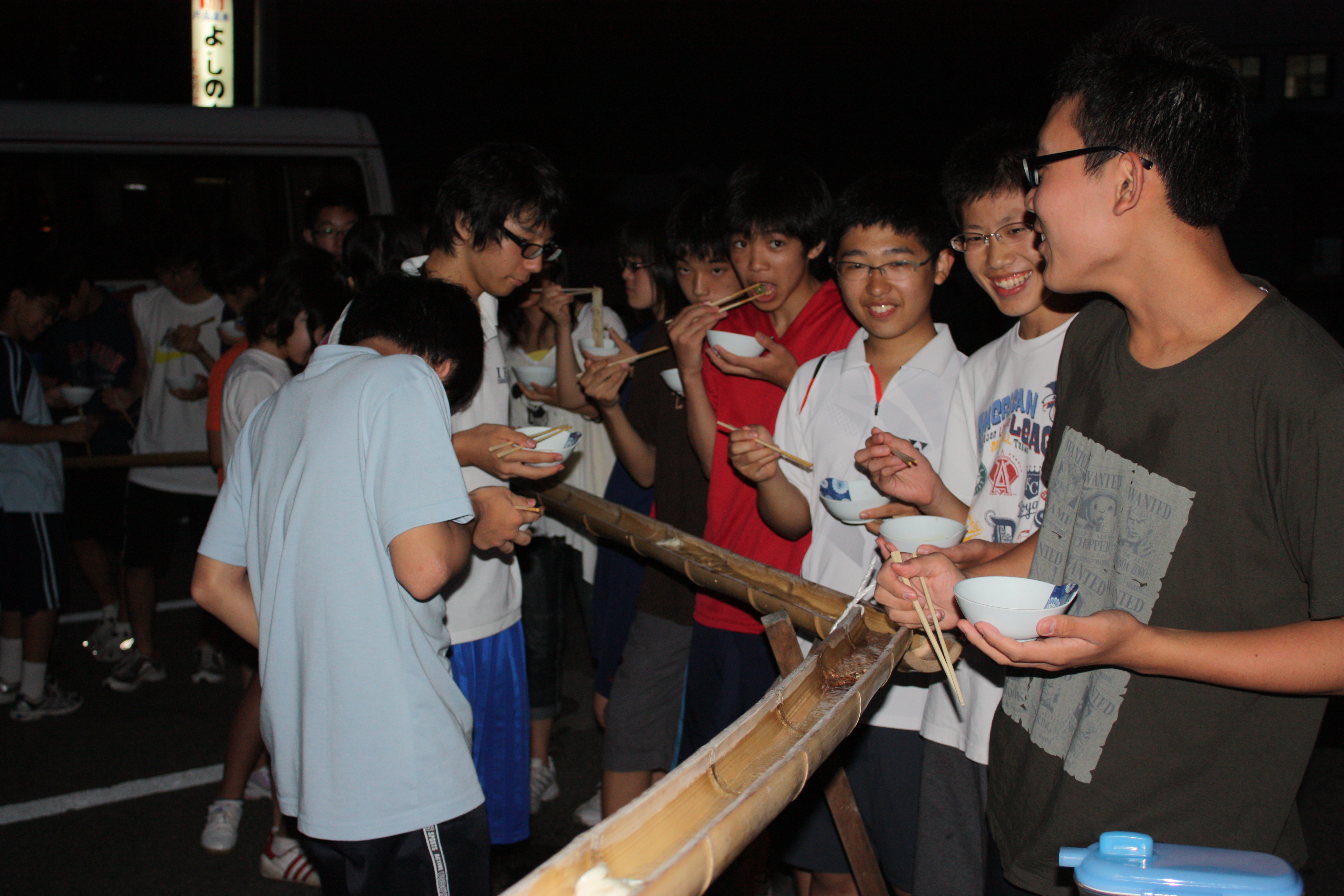 しかし、がんばった後には、お楽しみが付きものです。恒例の「流しそうめん大会」です!