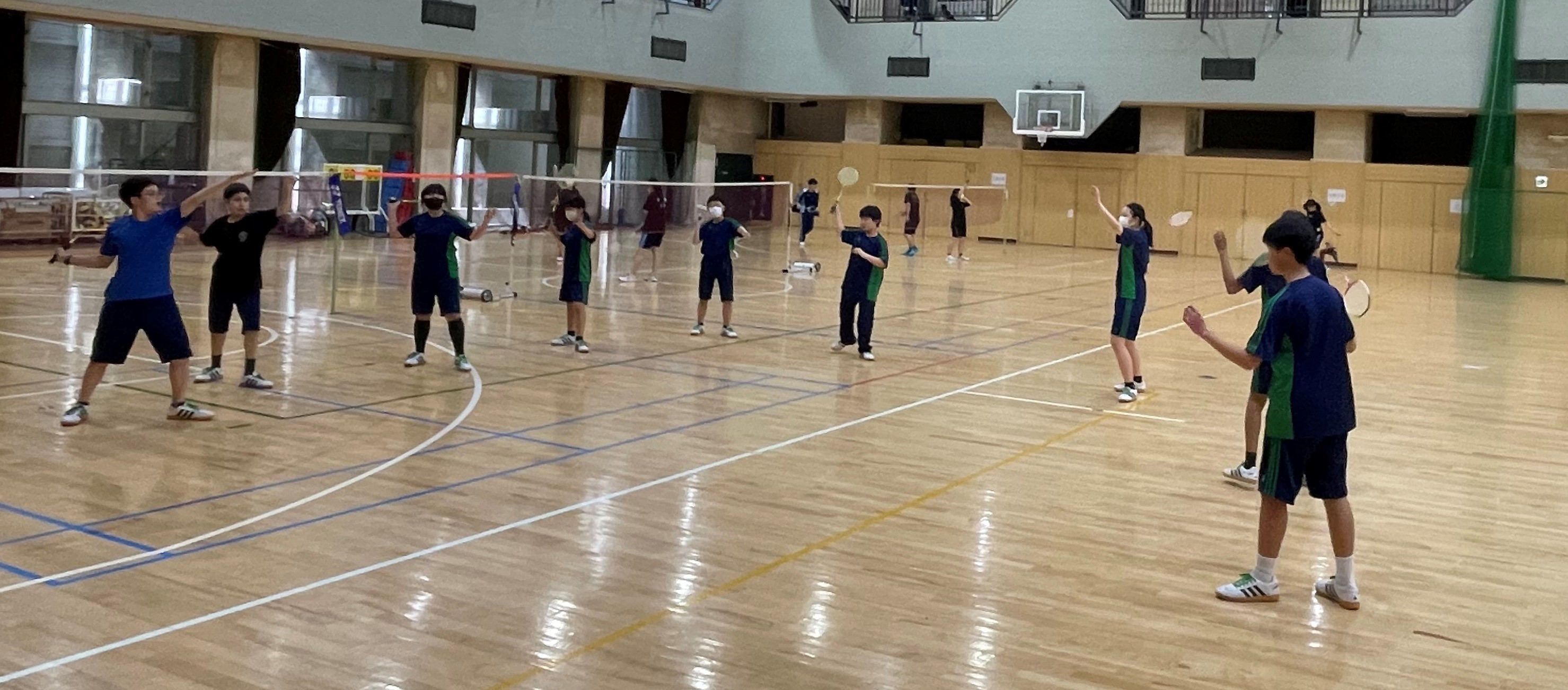 ↓バドミントンの基本であり最も重要なオーバーヘッドストローク。素振りでフォームを学習します。