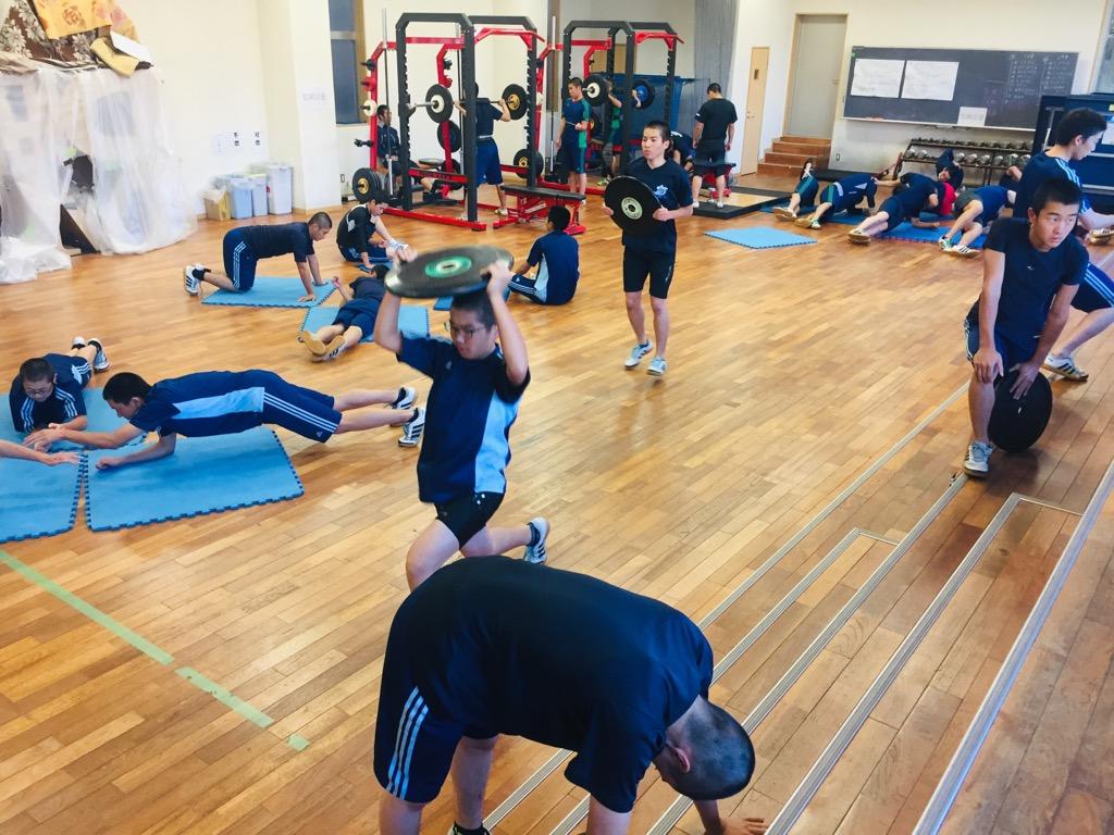 使用して朝練を行っています。選手達は数種類のウェイトトレーニングや