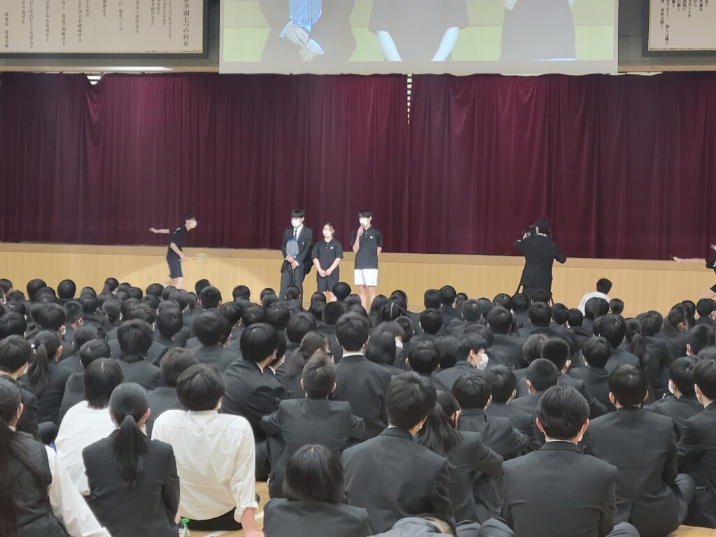 先輩たちは思い思いの格好で部活動への熱い思いを新入生に送っていました。新入生は一生懸命に先輩たちの話に耳を傾けていました。28日(金)までの仮入部期間に興味のある部活動に参加して、ぜひ「この部活動に入りたい!!!!!」という運命の出会いをしてほしいと思います。ぜひ、新入生諸君は文武両道を目指して充実した学校生活を送れるように頑張ってください。