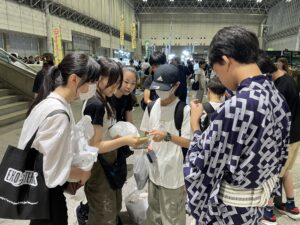 人混みすごいですね。実は部員達は「幕張メッセ」に来ています。