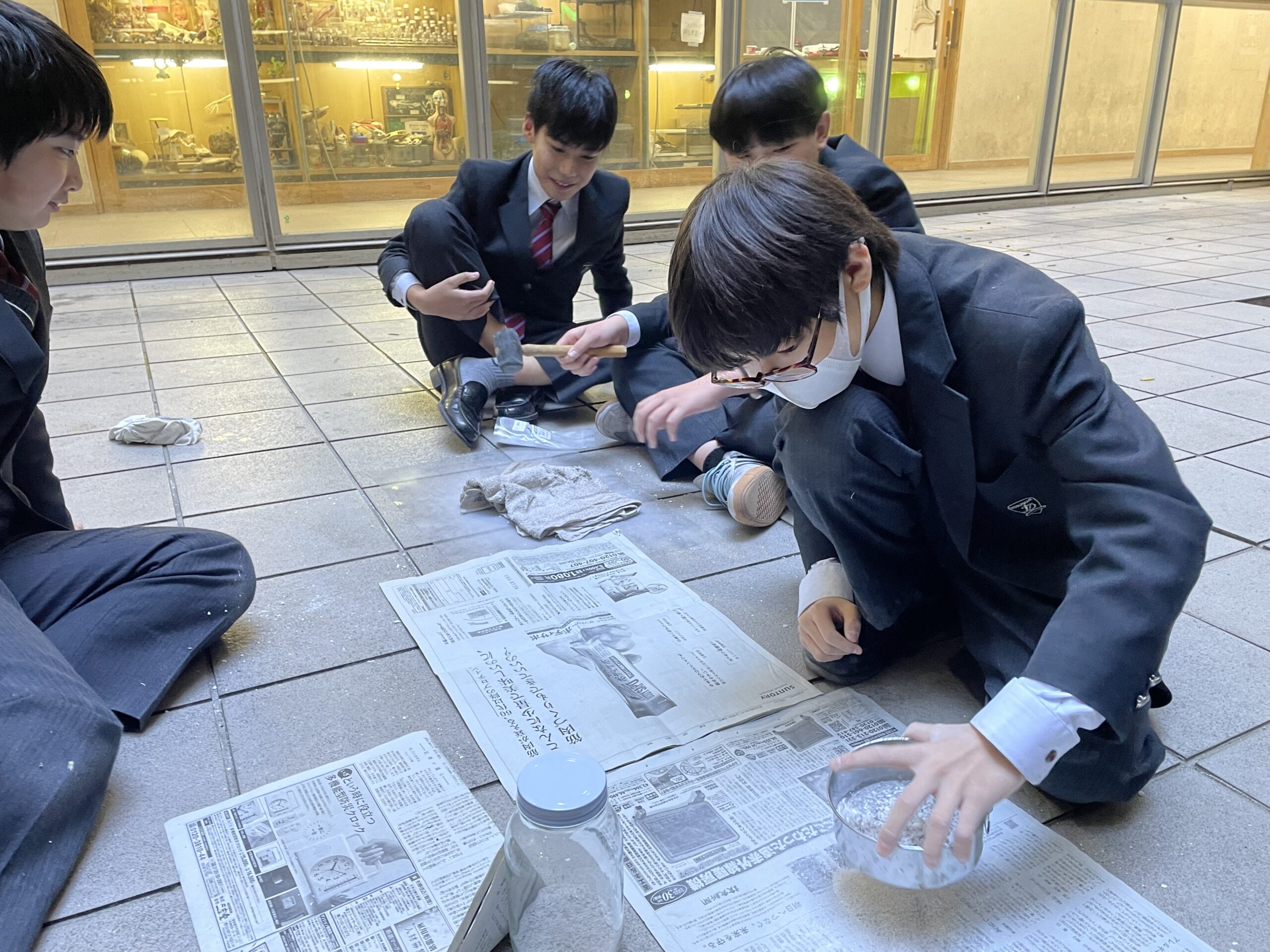 これは何をしているかというと、牡蠣殻を割ってすりつぶして「カルシウム剤」を作っているところです。