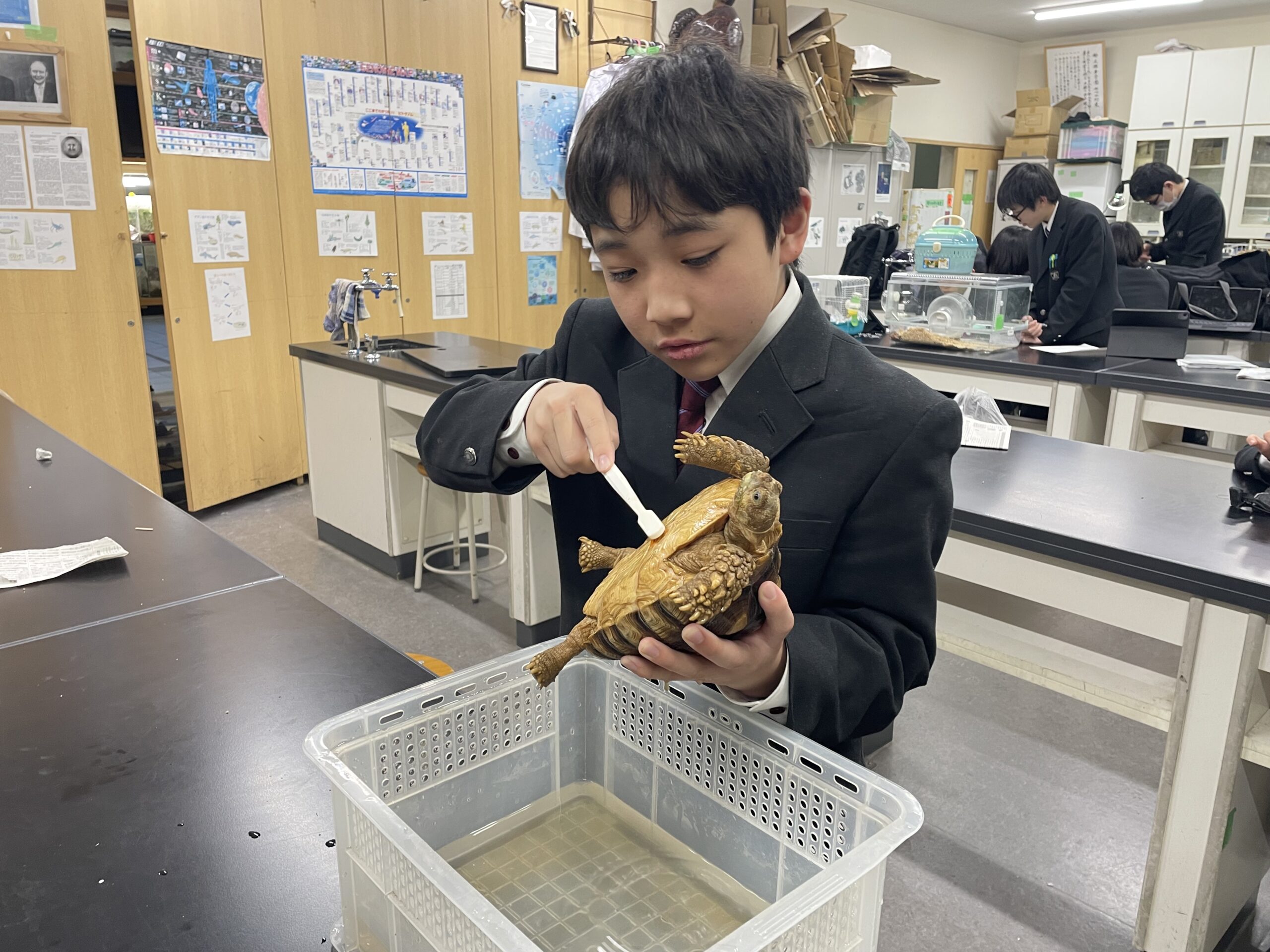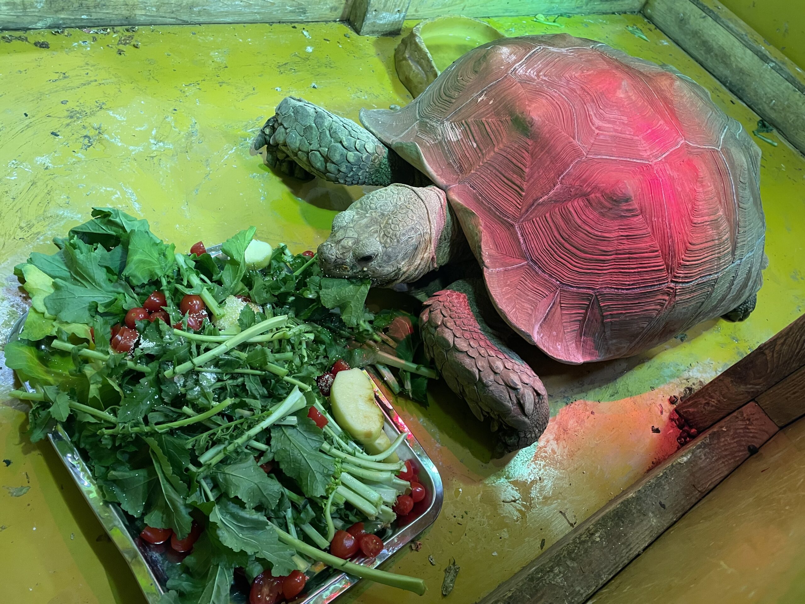 何だか、写真を見ると「野菜を食べ散らかしているように見えます」が、リクガメのご飯を作っています。