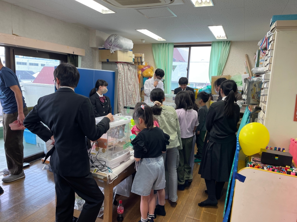 児童館を訪れる子どもたちに、生物部が飼育している生き物たちと触れ合ってもらうという企画です。
