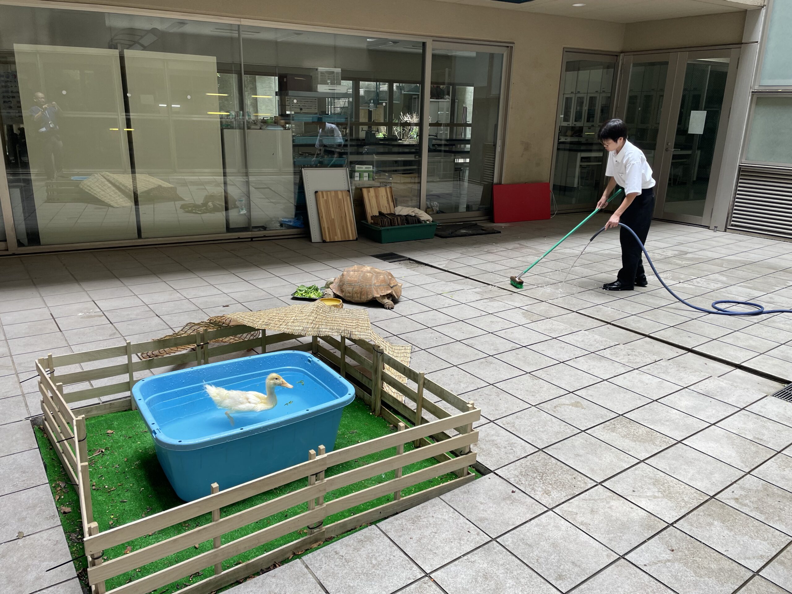 どうも。アヒルのスバルです。これから中庭にお散歩に行きます。