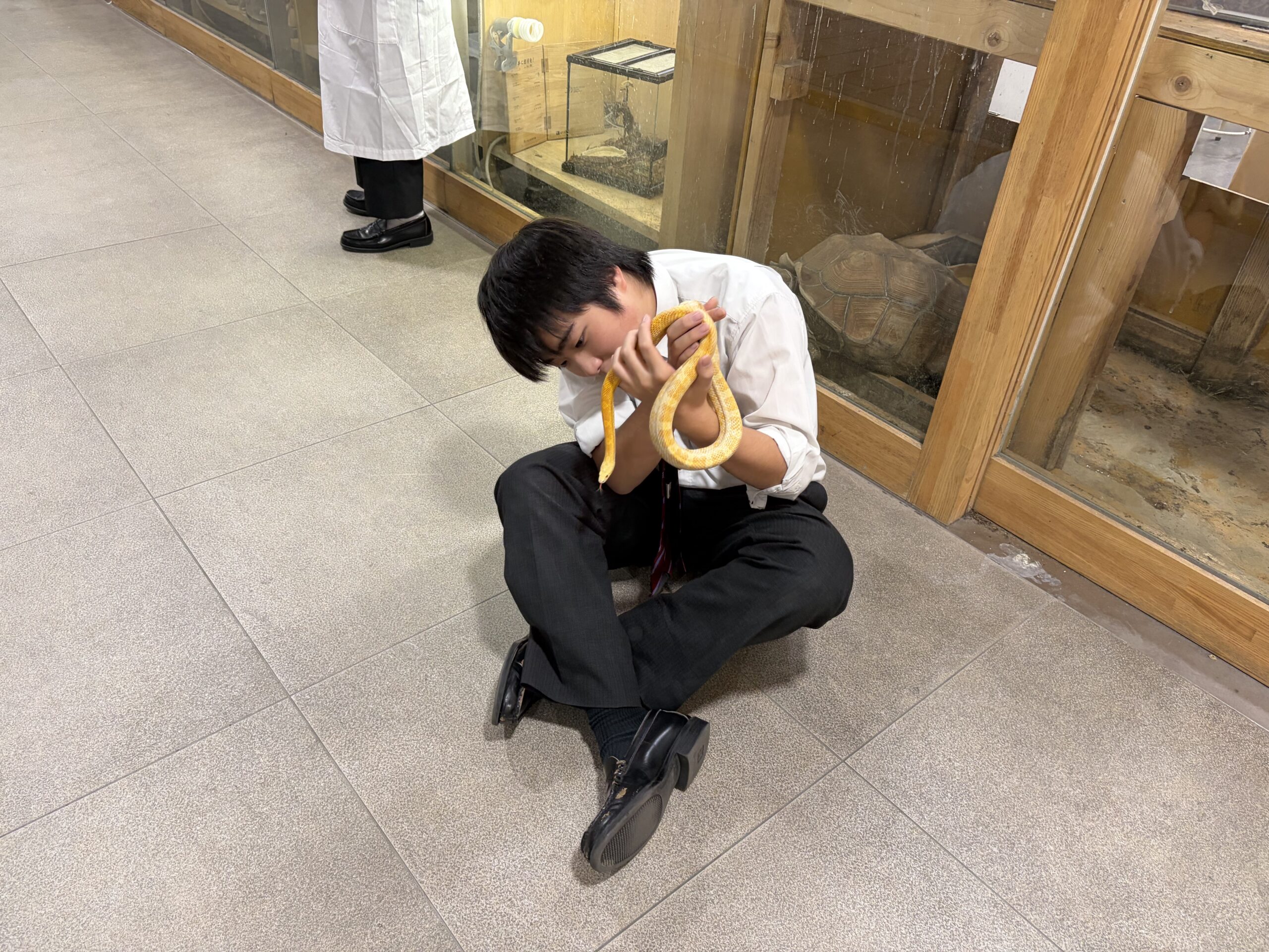 部員たちは、自分たちの飼育生物と触れ合いたいのです。