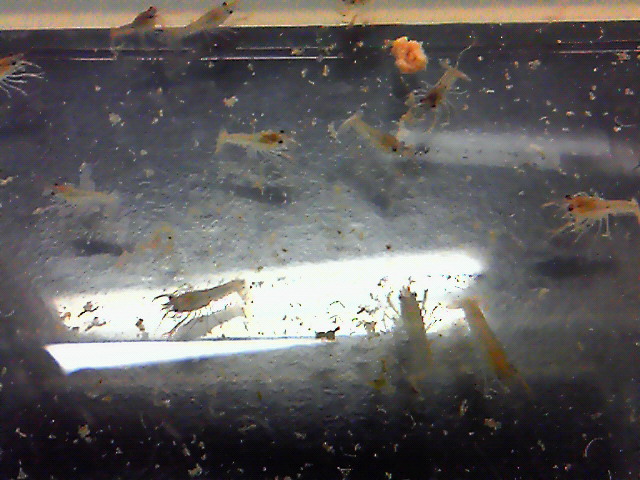 ザリガニの赤ちゃんが餌を探している様子です。