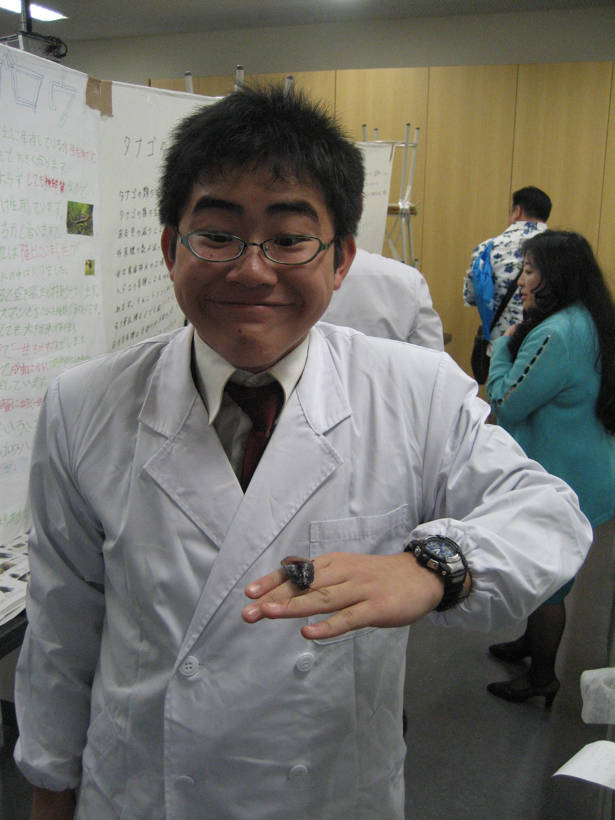 担当ブースで待機中。は虫類、両生類の説明ならお任せあれ。