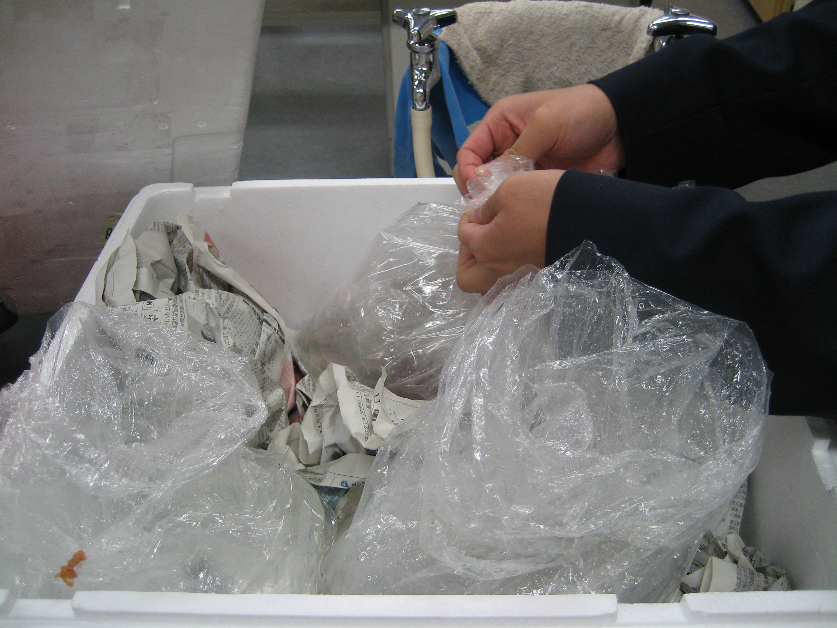 「魚送ったから海水魚水槽に入れてくれ」 との電話を受けたので、わくわくしながら梱包を解いていきます。