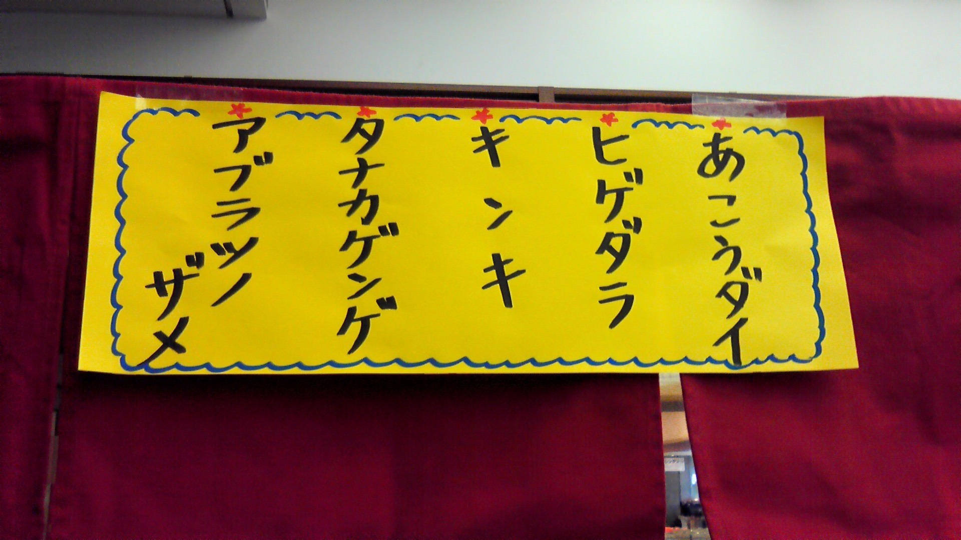 食べられます!下の写真はは「お品書き」。全部深海魚の名前です。