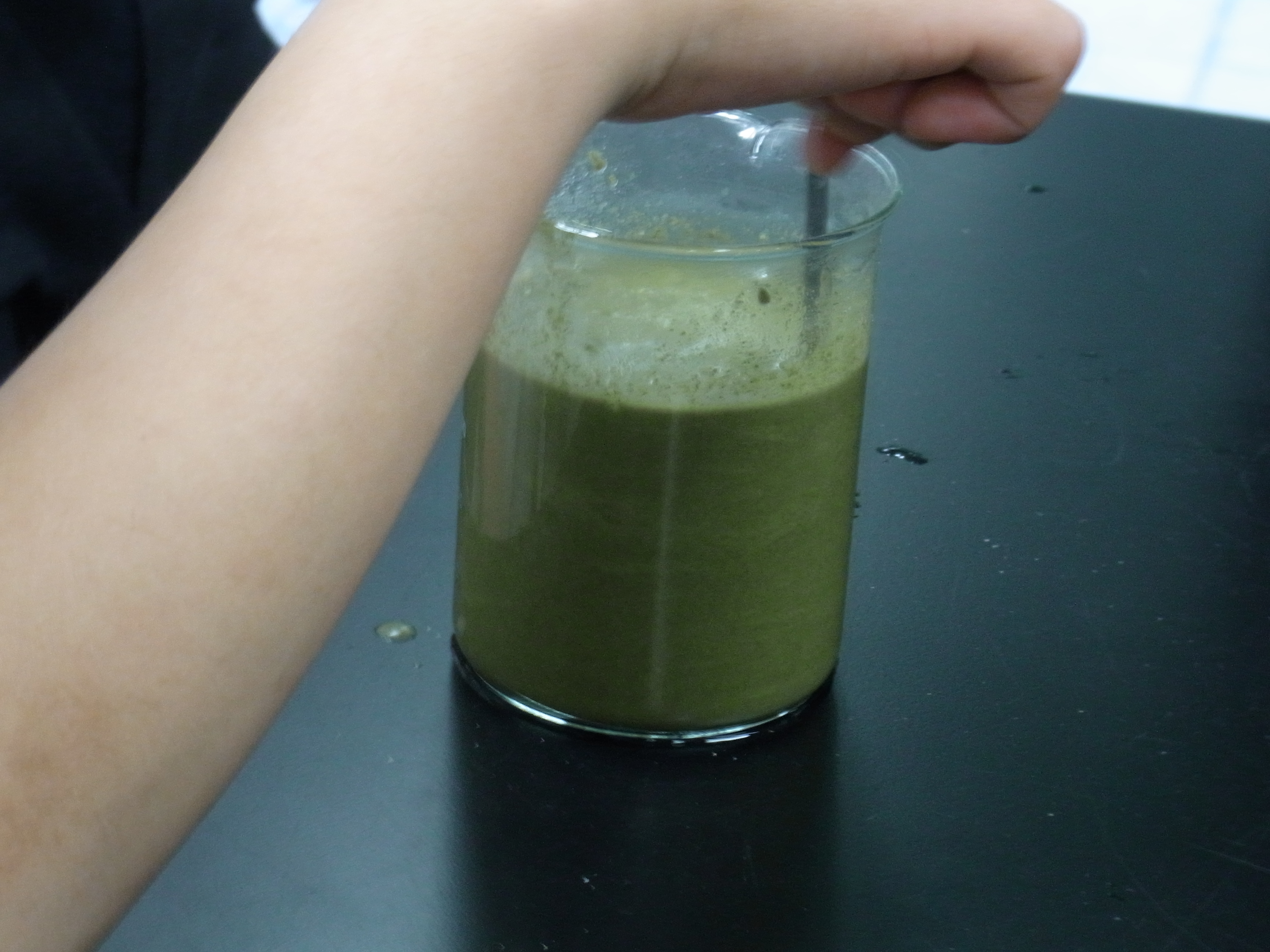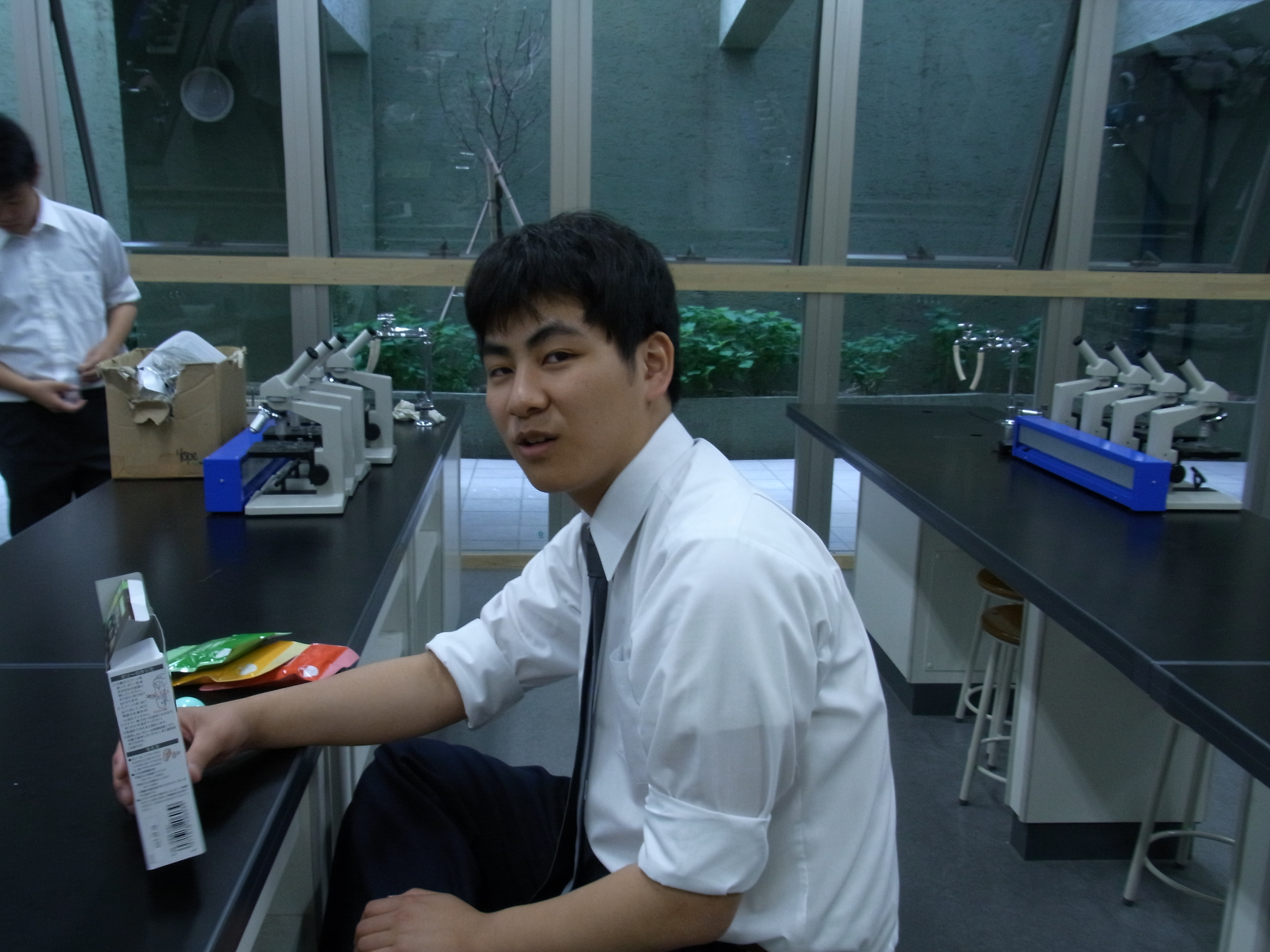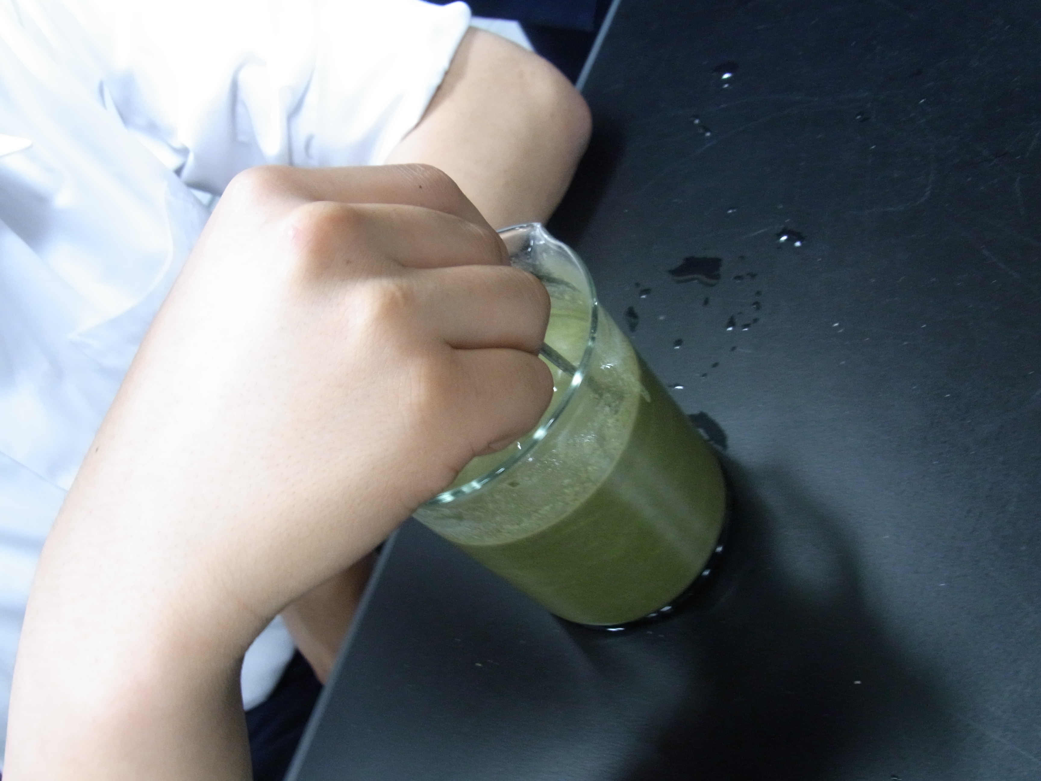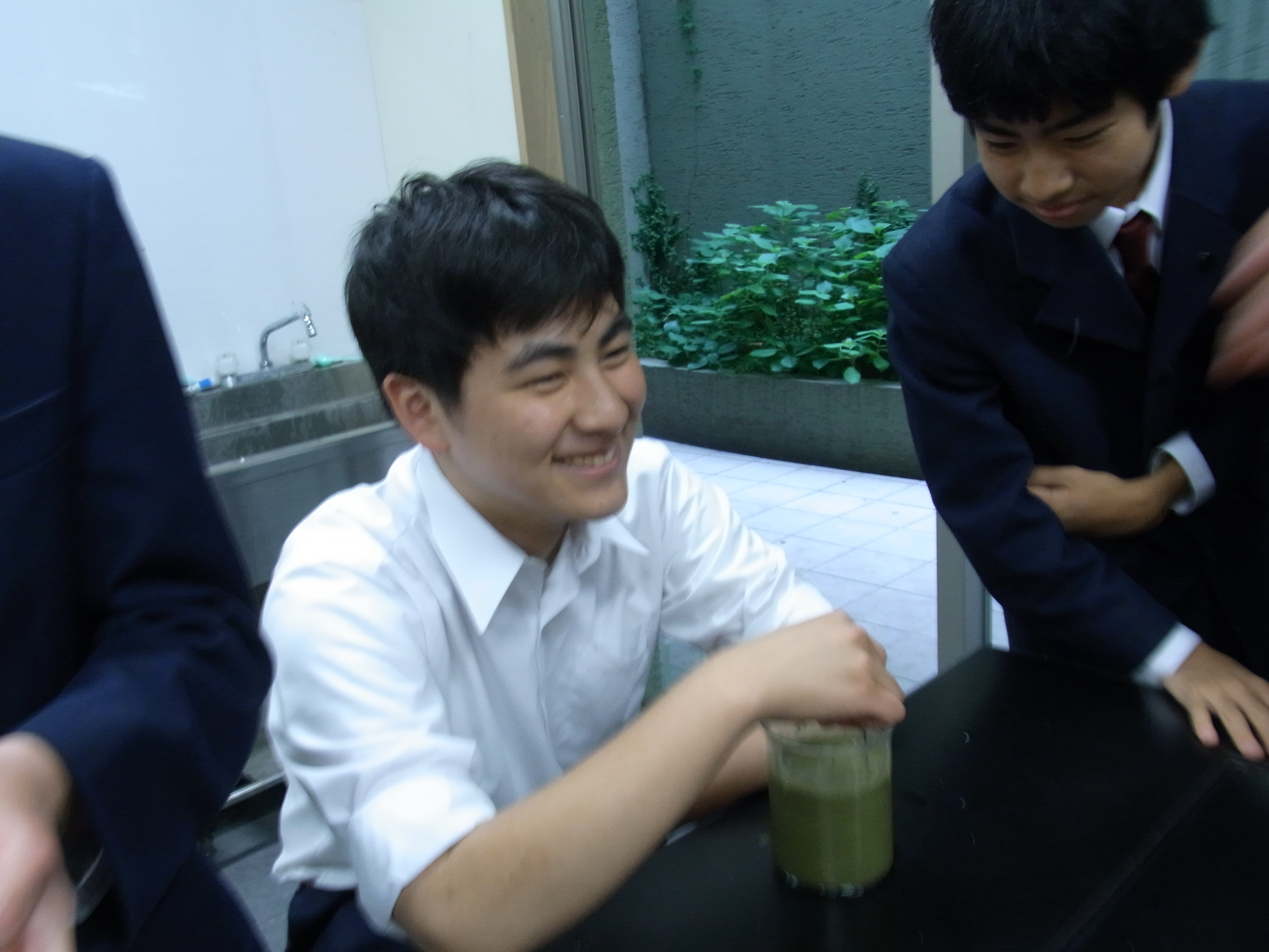 満足そうな先代部長。青汁臭さに顔をゆがめる後輩。