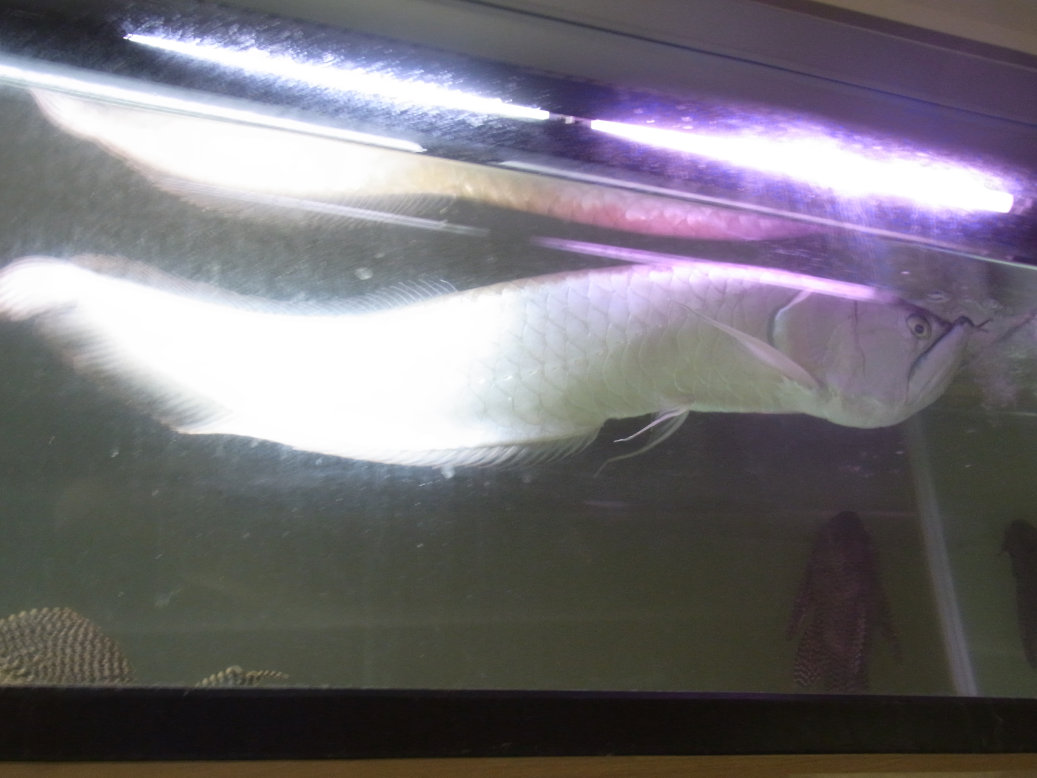 悠々と泳ぐアロワナ。体長は90cm近くになります。