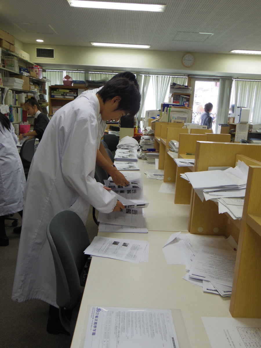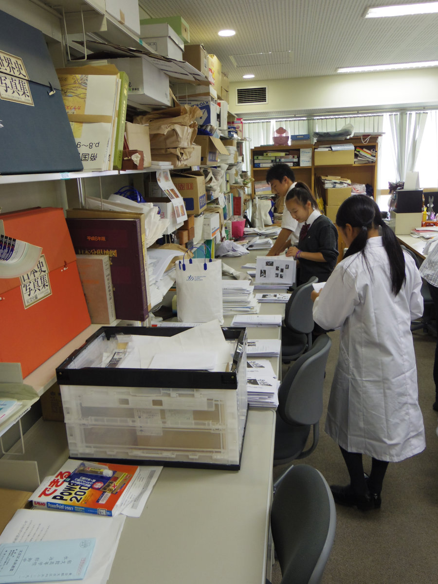 職員室の片隅で部員はフル稼働していました。