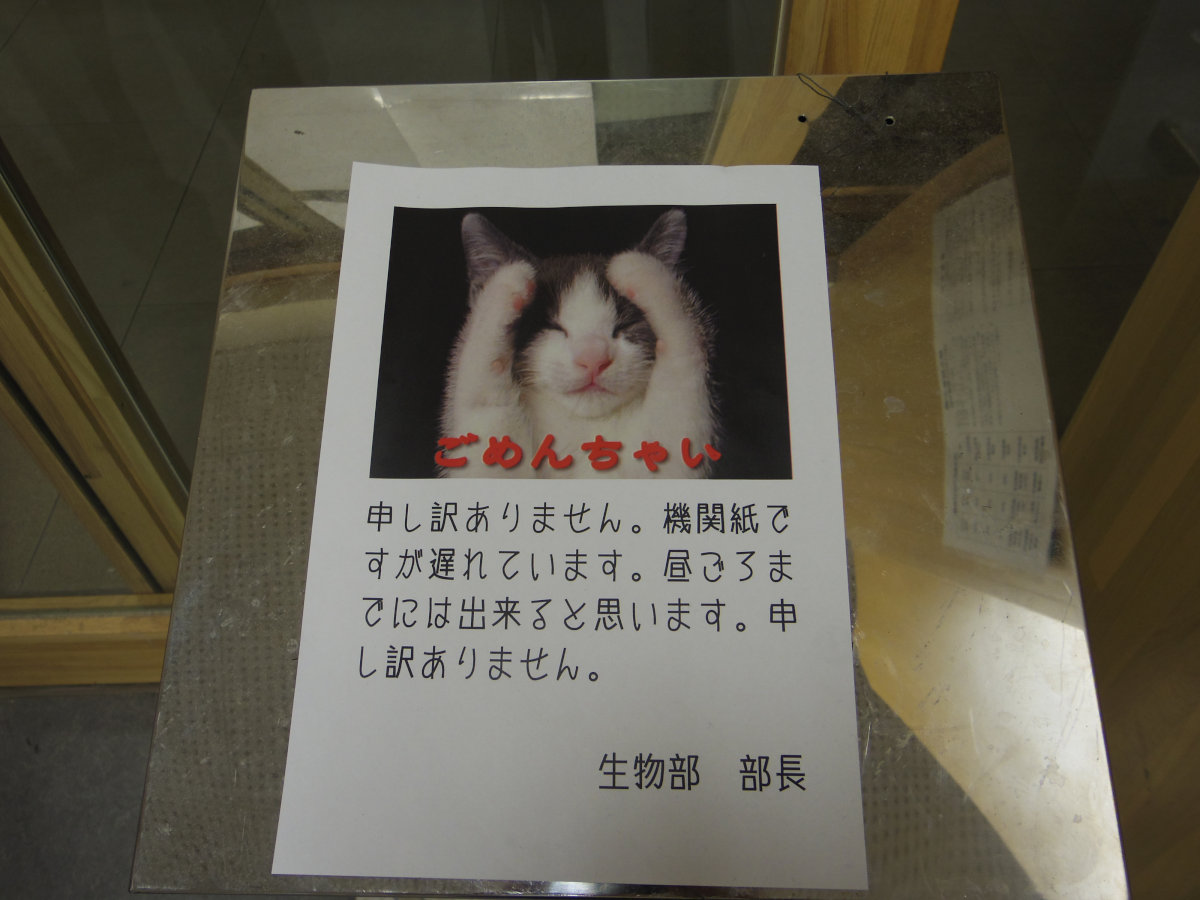文化祭当日、配布準備に時間がかかり、こんな張り紙も