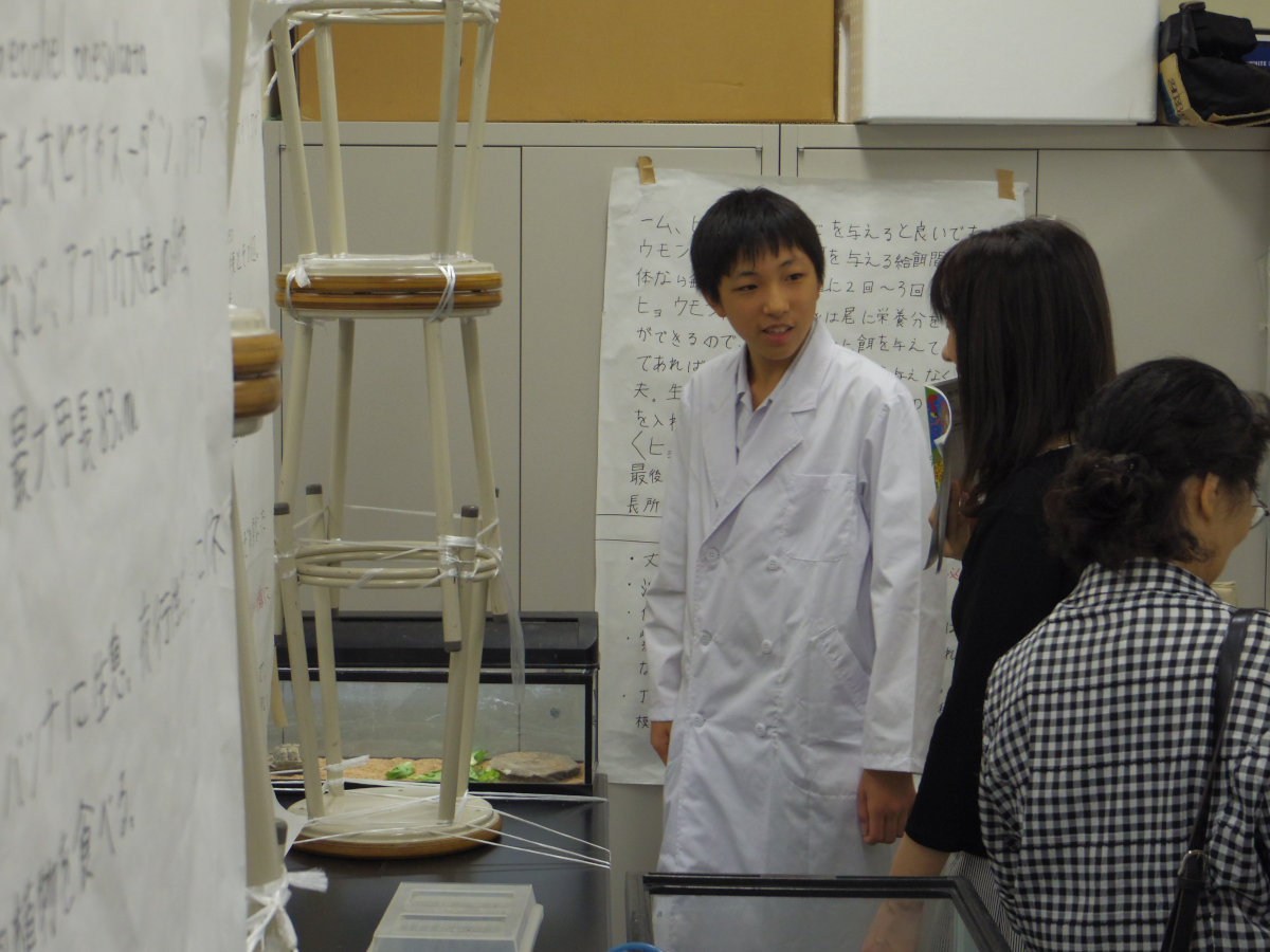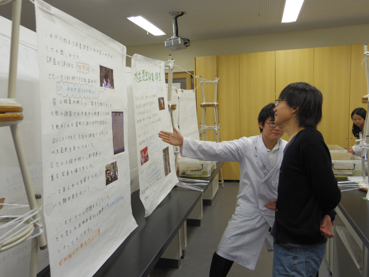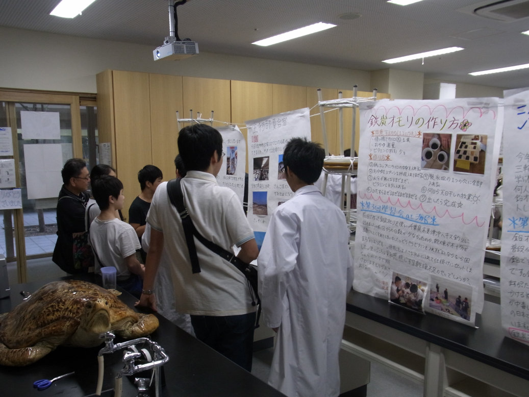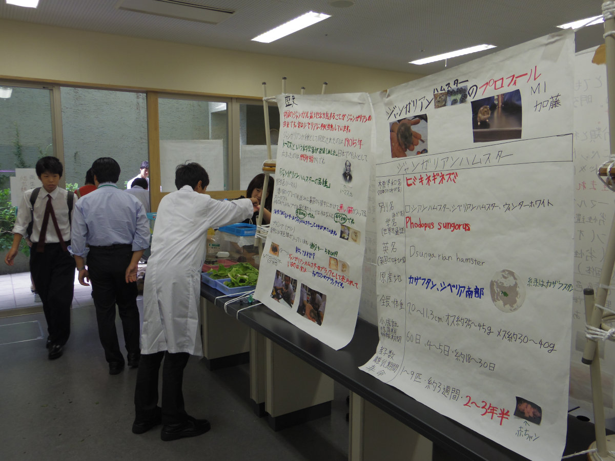 ハムスター紹介の模造紙が目立ちます。奥にはハムスターと触れあえる場を提供。