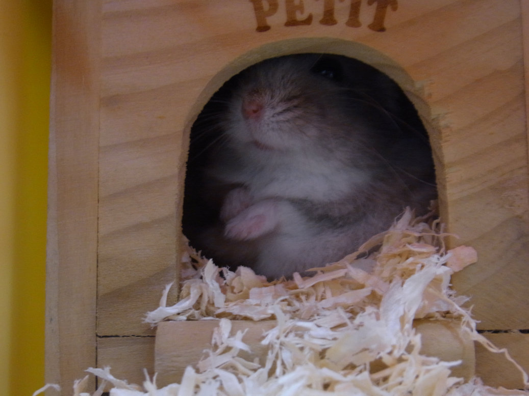 「 もう疲れたから眠っていいよね・・・ちらっ 」と目で訴えかけてくるハムスター。