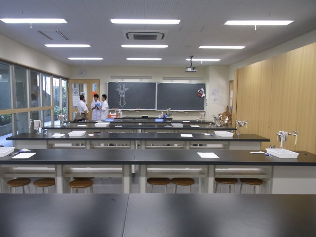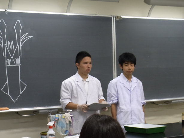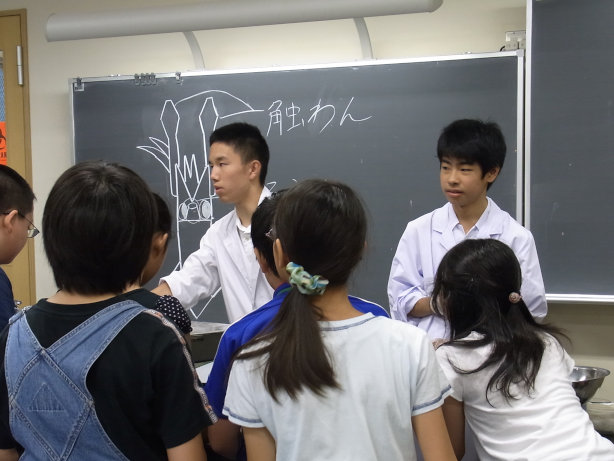 地下1階生物室で行われました。 奥にある黒板の絵が見えますか?