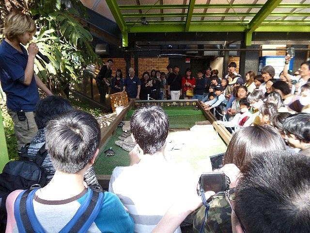 ここで一回記念撮影。後ろにいるのは「アルダブラゾウガメ」と「ケヅメリクガメ」です。