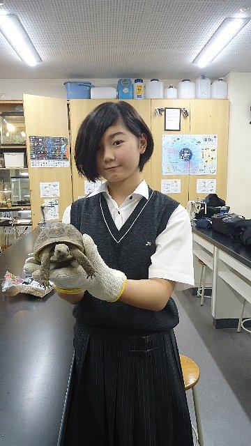 リクガメは小さくても力が強いので、しっかりと押さえなければなりません。