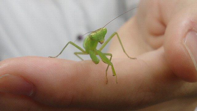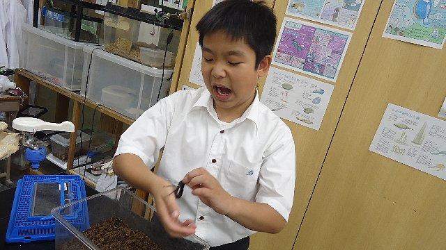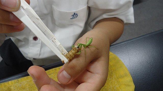 ミルワームを切って与えてます。こういう食べ方もするんですね!