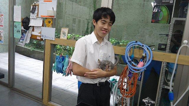 生物部に現在いるチンチラは、部員の家の子なのですが、生物室でみんなに可愛がられています。
