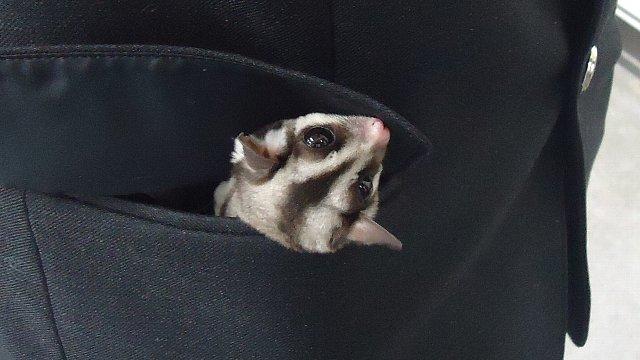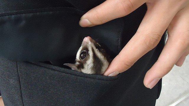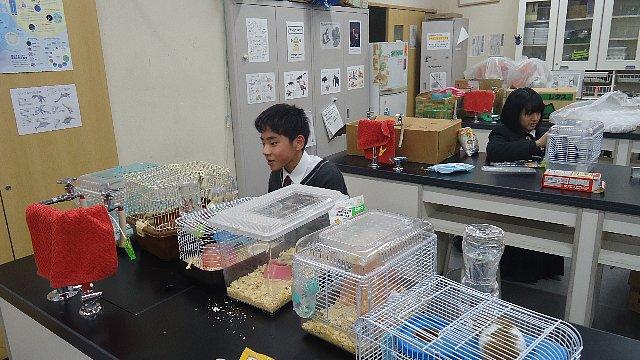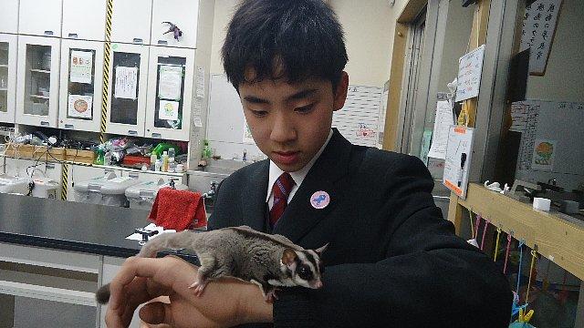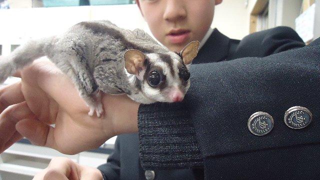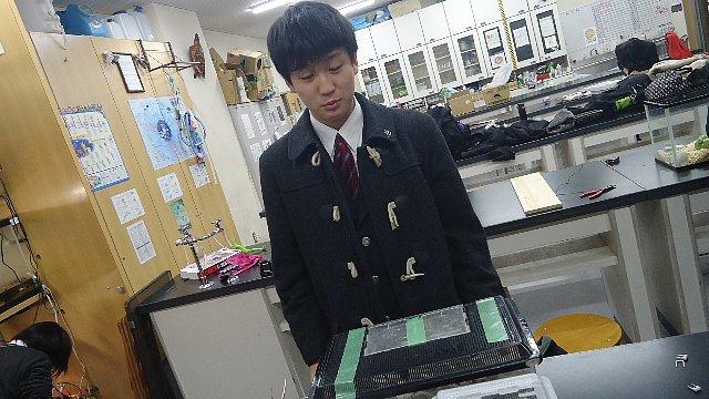彼の前に置いてあるケージの中は、哺乳類ではありません。昆虫です、、、、、、、。