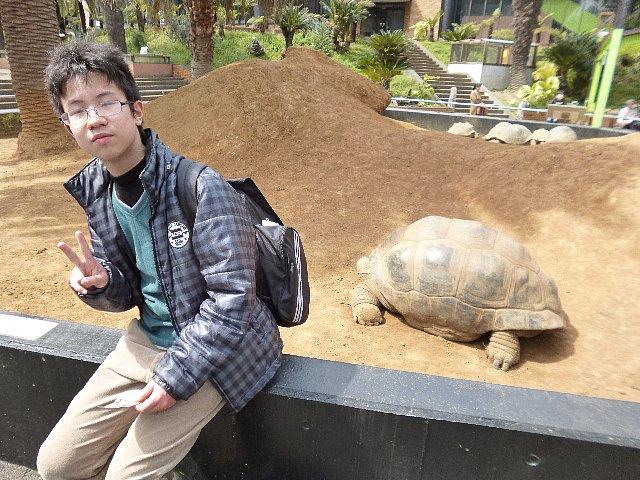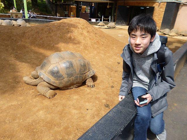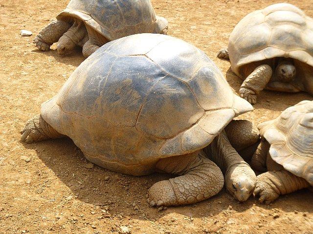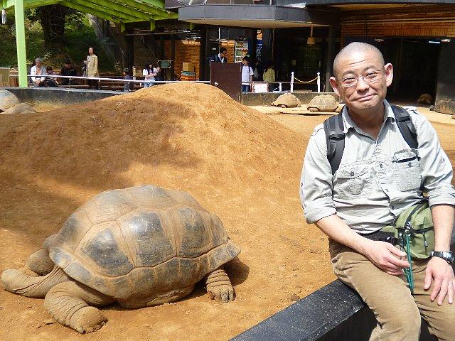 (写真の個体は多分、アルダブラゾウガメ。鼻の穴の形がガラパゴスと違います。)