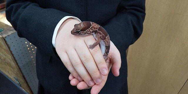 ヒョウモントカゲモドキ(レオパ)は、大人しくてハンドリングがしやすいです。