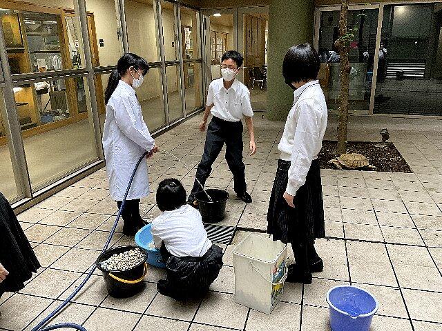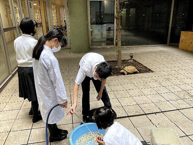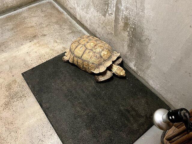 この作業、メッチャ大変です。これだけ大きなリクガメですとフンの量も凄いですから。^^;