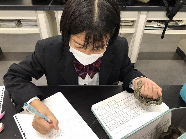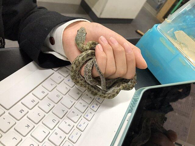 何で「アオダイショウ」握りしめながら勉強しているんよ!(笑)