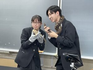 相変わらずのヘビ。(セーターの下側に潜り込んでいる)