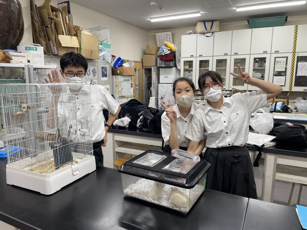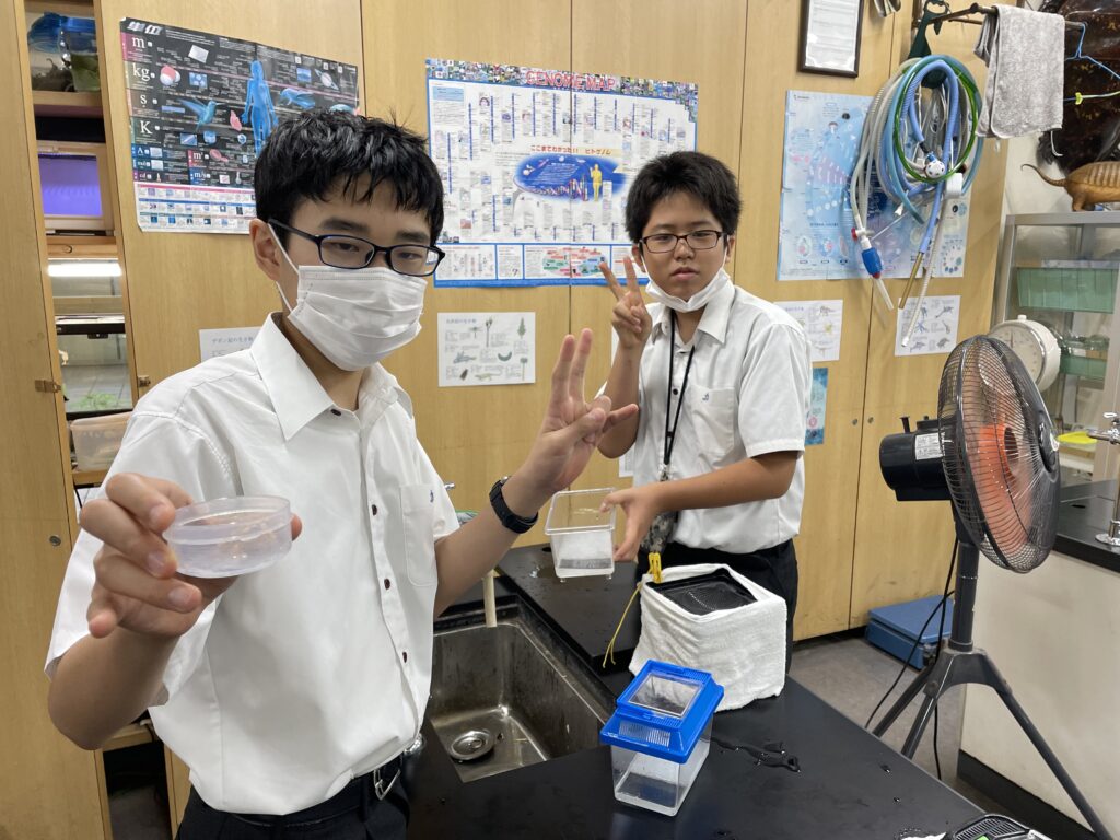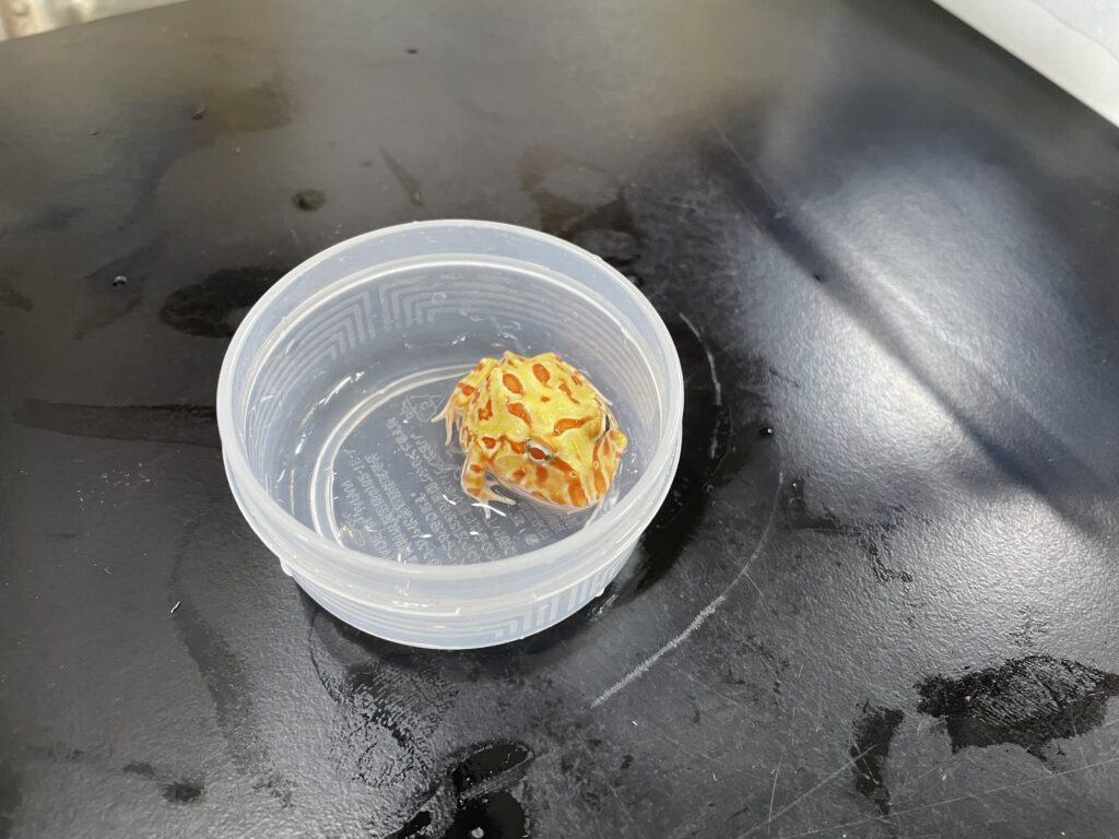 実はカエルのエサを捕まえているのです。生物室の外の花壇(?)には、小さな昆虫などが結構います。