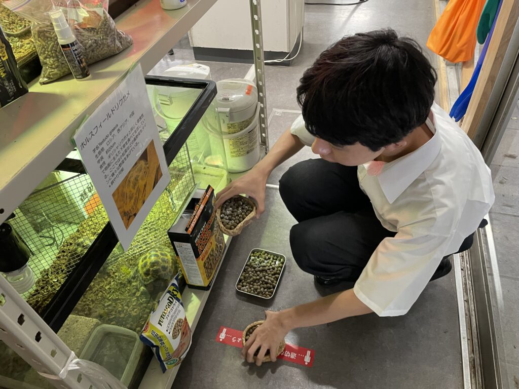 ケズメリクガメとロシアリクガメにも、ご飯と水をたくさんあげます。