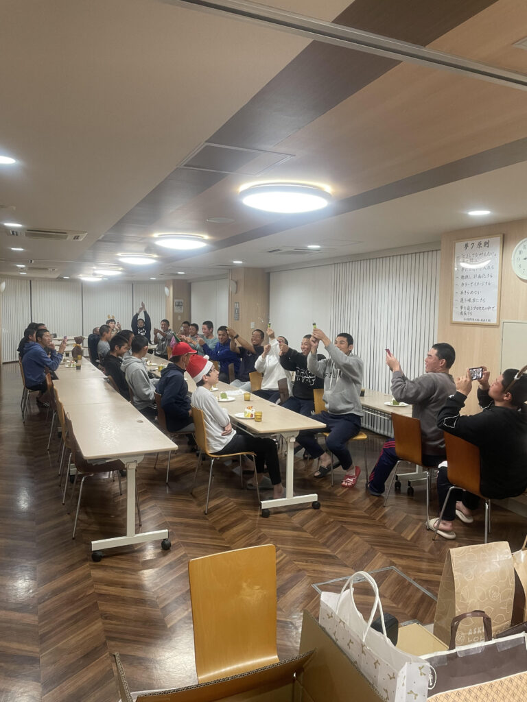 さて、今回は年末に行われたクリスマスパーティーの様子をお伝えします。今年は帰省している寮生も多く半数の参加となりましたが恒例のビンゴ大会に寮父母さんの特製ケーキと寮生たちは大喜びでした。特に野球部は厳しい冬の強化練習の息抜きになったのではないでしょうか笑