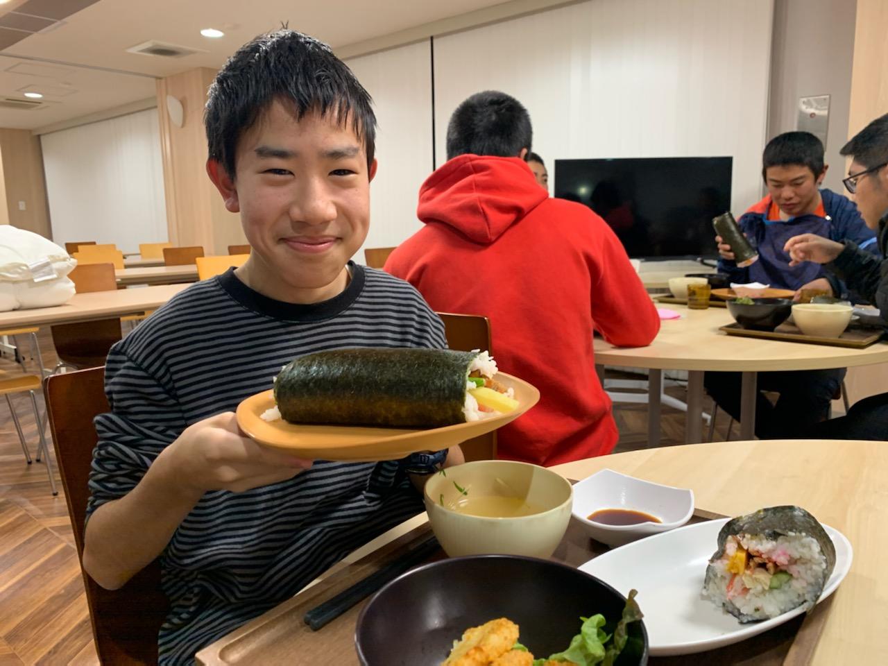 寮生たちは作法に従い、終始無言で恵方巻きを頬張っていました。
